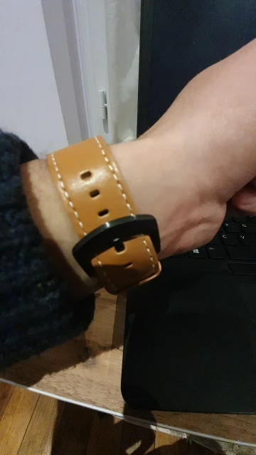 Многого не ожидал, конечно. Многого и не обещали. Но в жизни выглядит, как будто ремешок вырезали из линолеума. На фото продавца выглядит лучше, на деле на кожу не похоже.