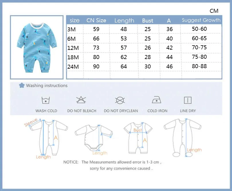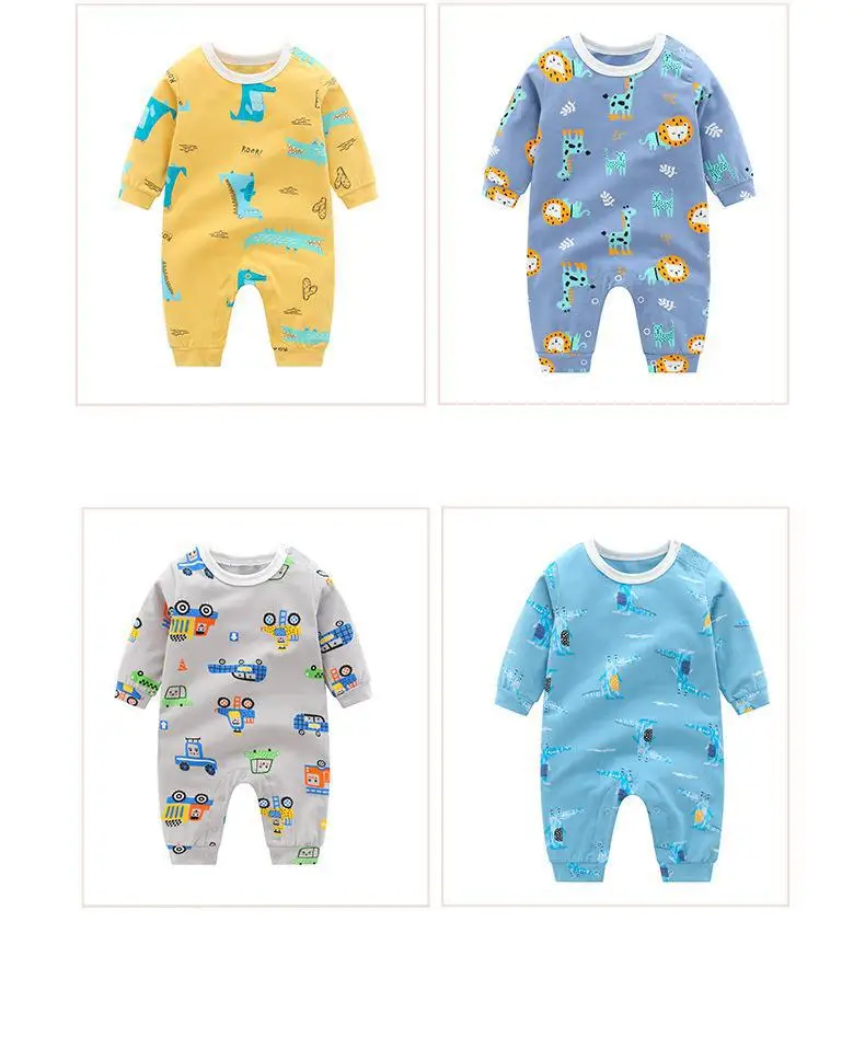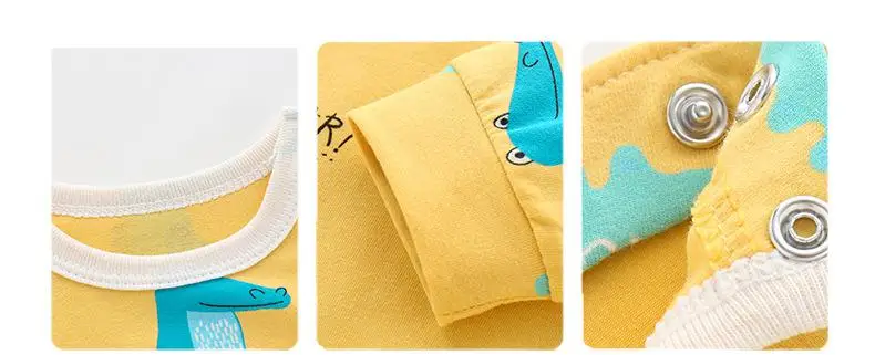 Новая осенняя одежда для малышей от 0 до 24 месяцев хлопковый комбинезон с принтом динозавра для маленьких мальчиков и девочек, комбинезоны с длинными рукавами и круглым вырезом для новорожденных