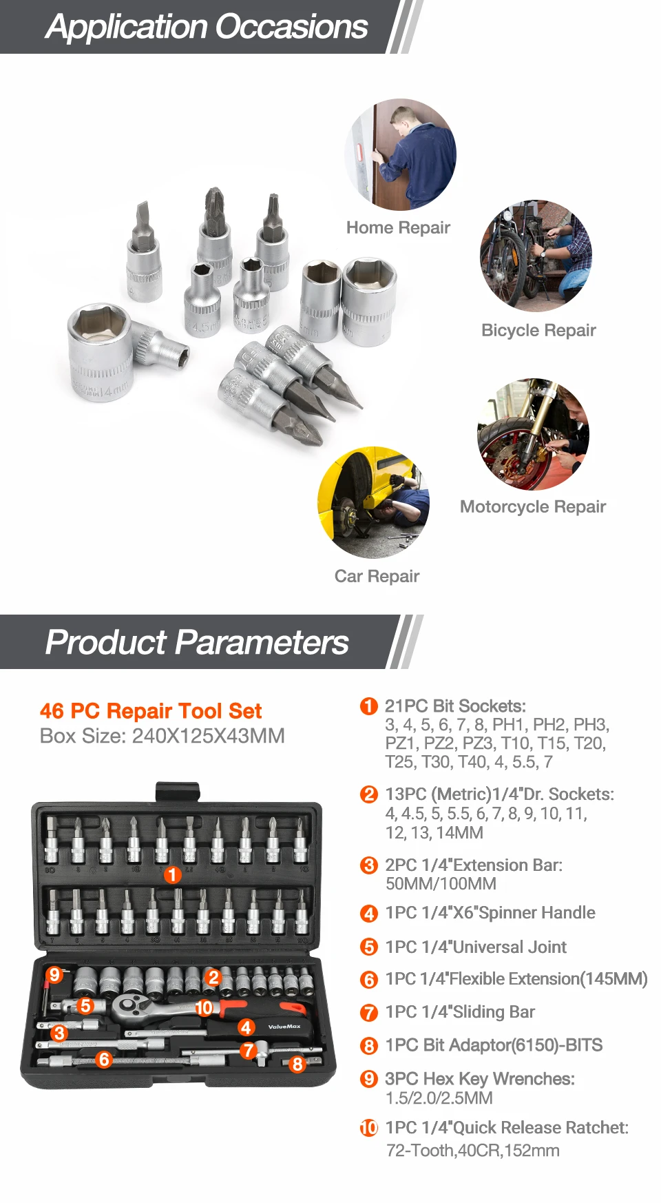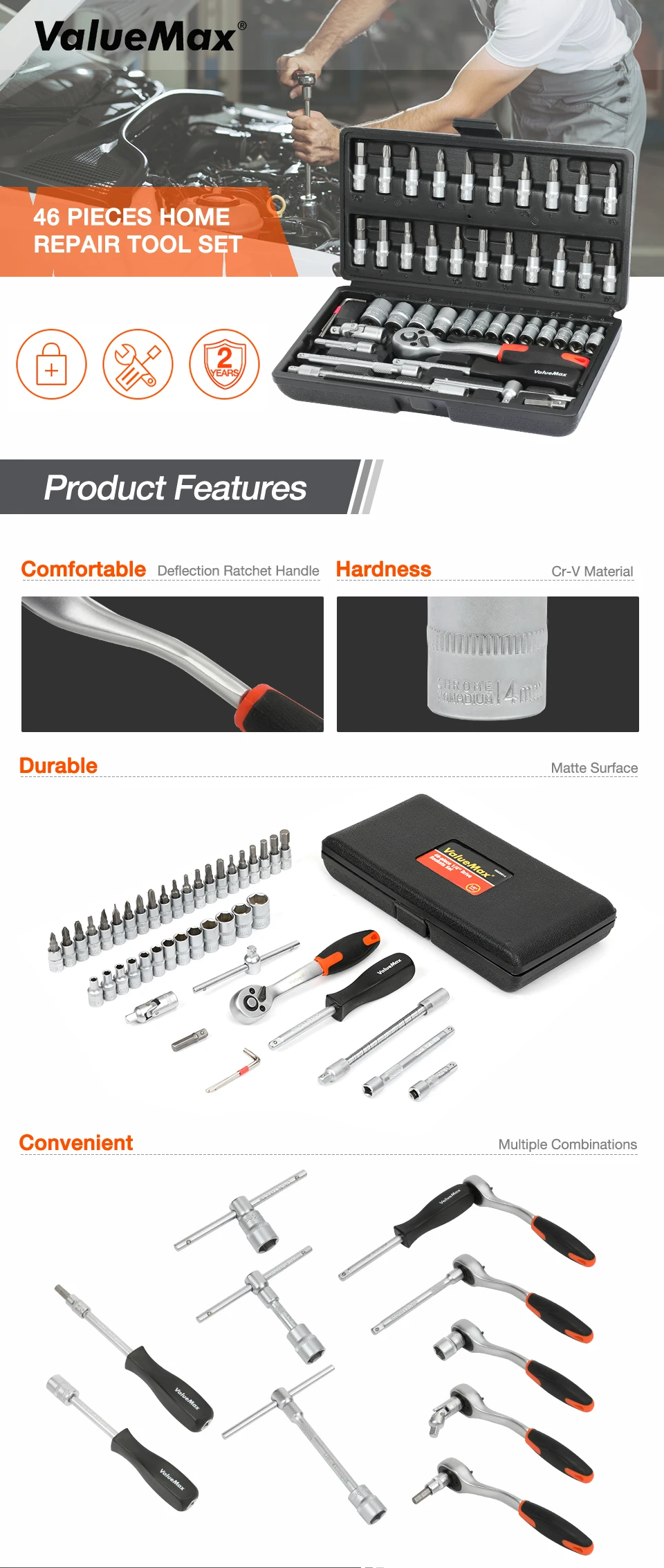 Наборы ручных инструментов ValueMax, набор инструментов для ремонта автомобилей, коробка механических инструментов для дома, Набор торцевых ключей 14 дюйма, отвёртка с трещоткой насадки
