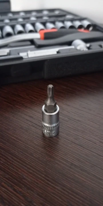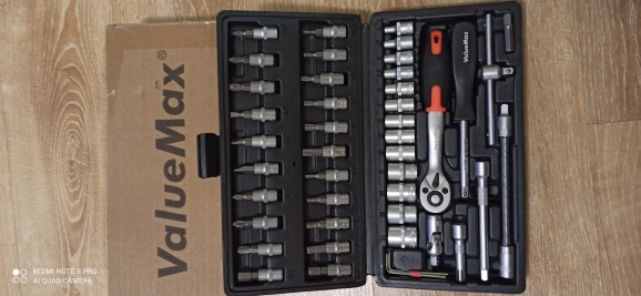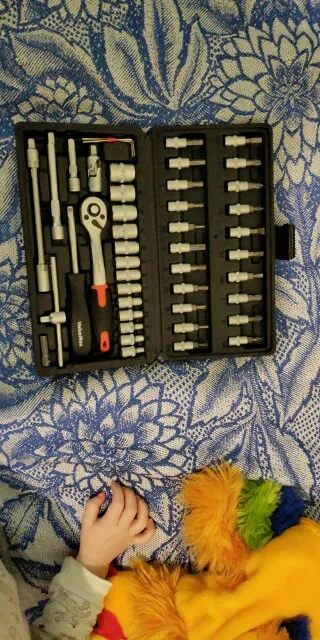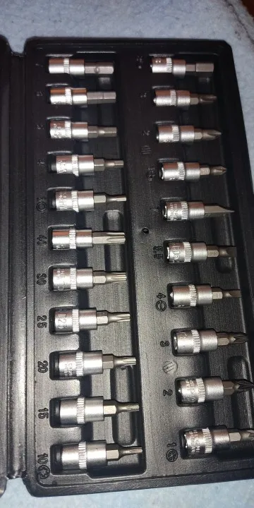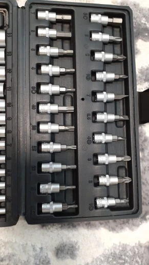 Товар хороший. Все элементы выглядят качественно, на ощупь тоже приятные. Набор богатый и разнообразный. Из минусов: на ручку с поворотной головкой (трещетку) головки фиксируется ненадежно, причём все. Работать можно, биты все время спадают и приходится их поддерживать второй рукой. Не смотря на это я доволен.