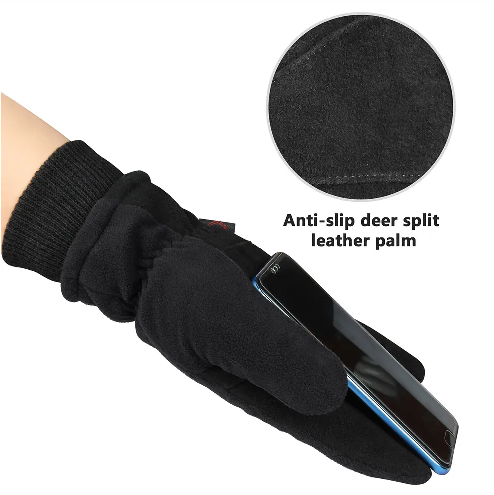 Обратите внимание: приведенная выше иллюстрация только для задней части этих тепловых перчаток, ладонь перчаток не имеет водонепроницаемого ТПУ и флиса, верхний слой ладони-это натуральная замша из оленьей кожи с отличной защитой от скольжения для надежного захвата.