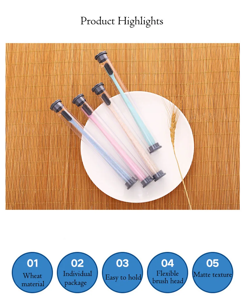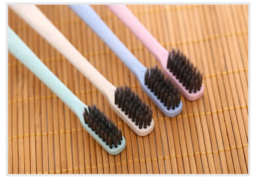 Зубная щетка для взрослых, мягкая из бамбукового угля, пшеничная со...