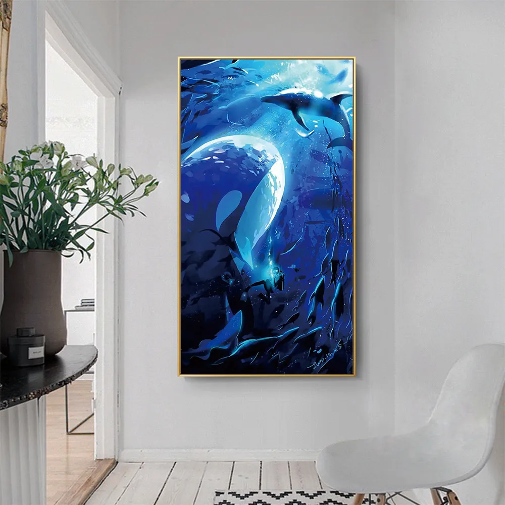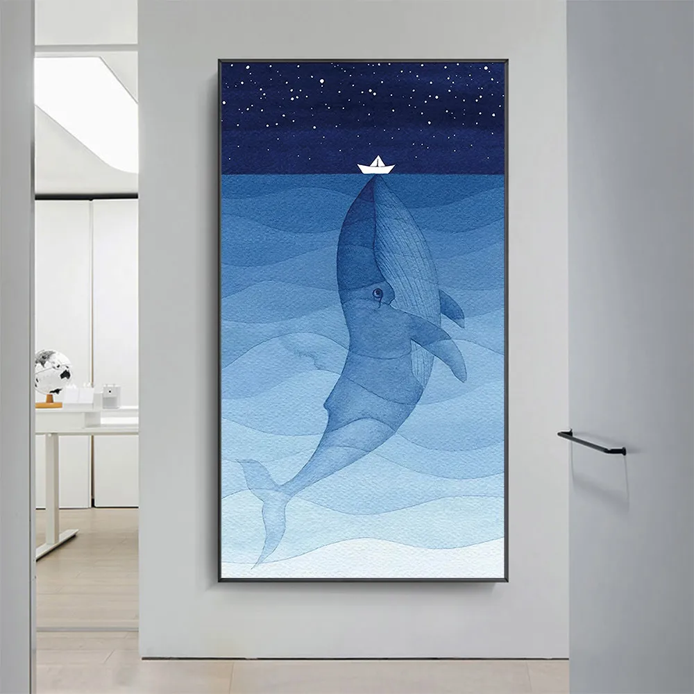 Nordic Минималистский морских животных Акварельная живопись c изображением Кита на холсте Плакаты и принты Куадрос Wall Art домашний декор