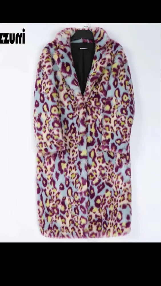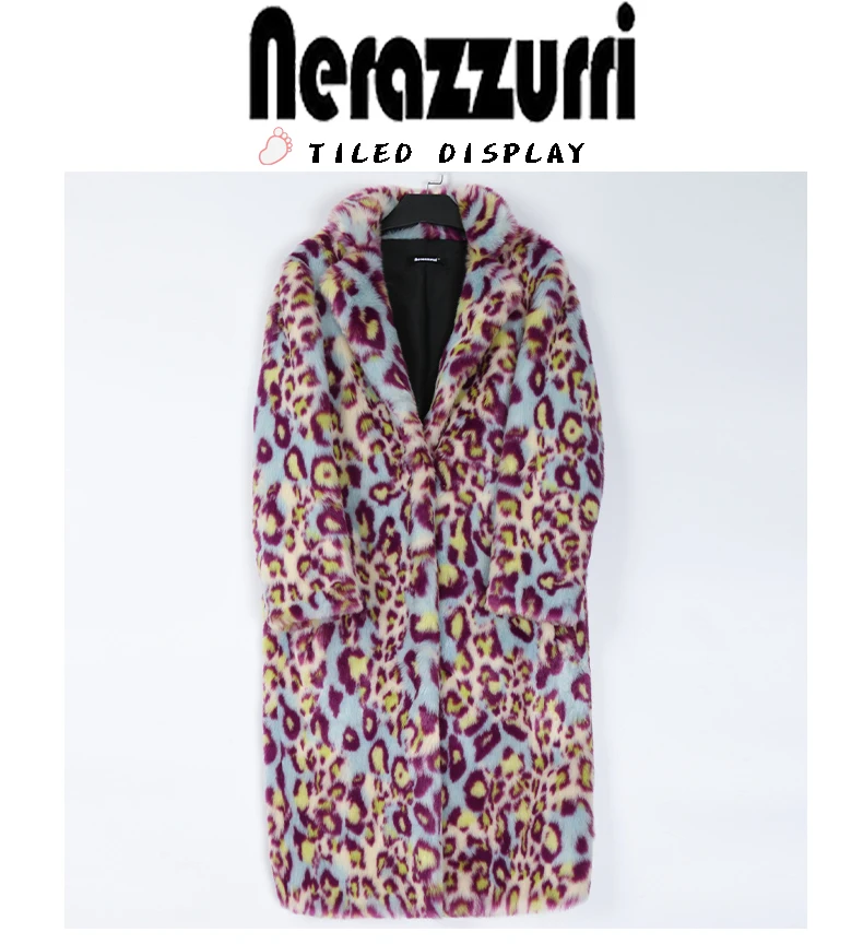 Nerazzurri женское пальто из искусственного меха с леопардовым принтом и отворотом Длинная теплая женская мода больших размеров Разноцветная зимняя верхняя одежда женская 2020 шуба искуственный мех. экошуба женская