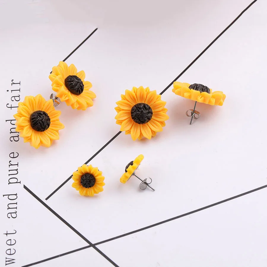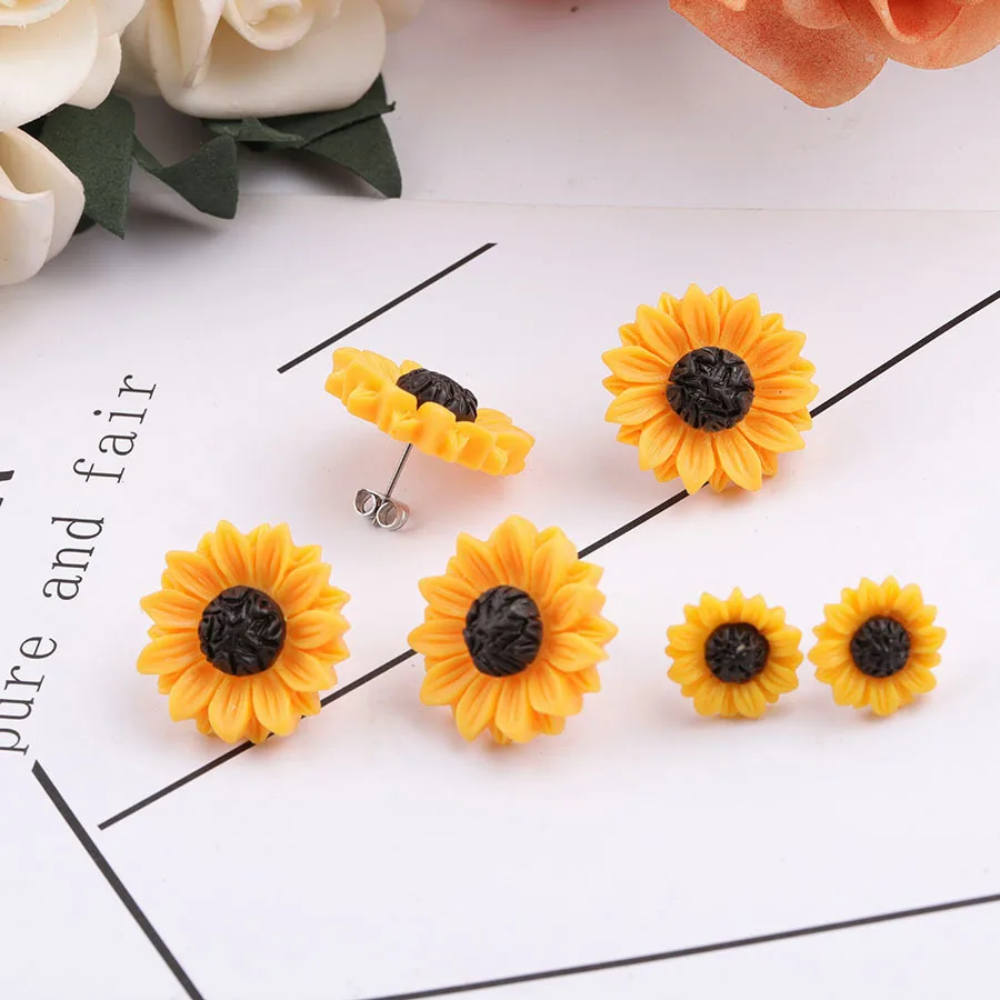 Серьги-гвоздики из серьги в форме подсолнечника смолы в форме цветка, свадебные украшения, аксессуары для подружки невесты, подарок на день рождения для женщин, 1 пара