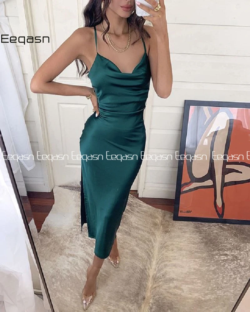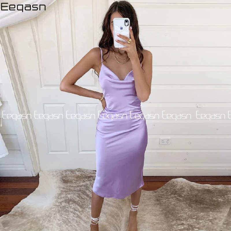 Eeqasn модные Лавандовые коктейльные платья 2020 открытая спина облегающие Зеленые Вечерние платья на тонких бретелях для особых случаев на заказ