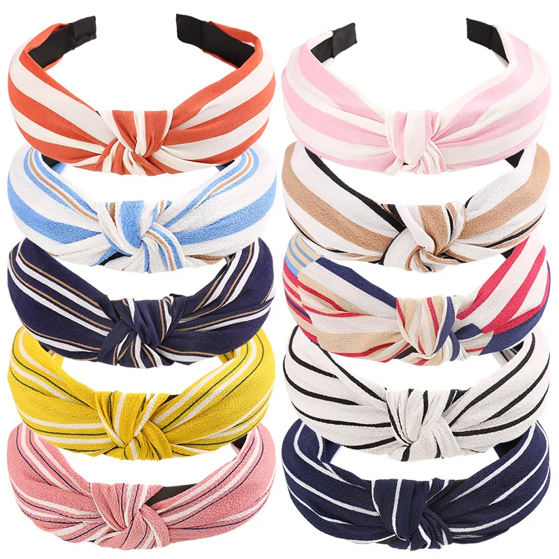 Обруч для волос женский с бантом, универсальная простая тканевая повязка на голову в клетку и полоску, несколько стилей, модные аксессуары для волос для девушек и женщин