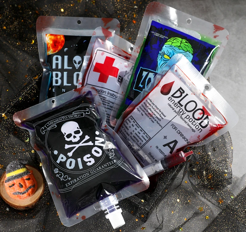 5 шт. контейнер для напитков для косплея на Хэллоуин, сумка для вампира, сумка для крови, реквизит, сумки для напитков с зомби, 250 мл, ПВХ, сумка для бутылок с водой