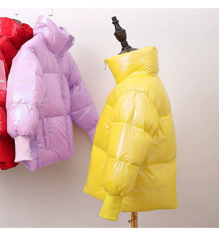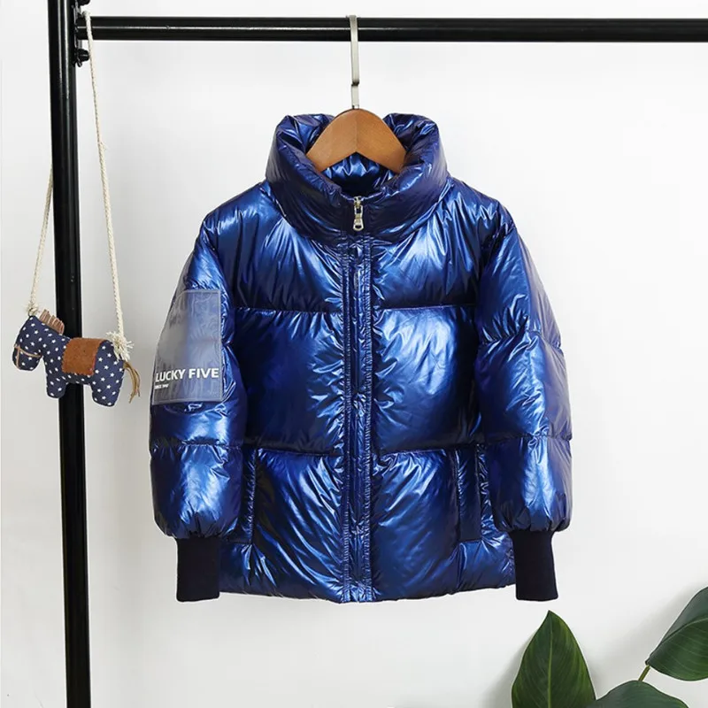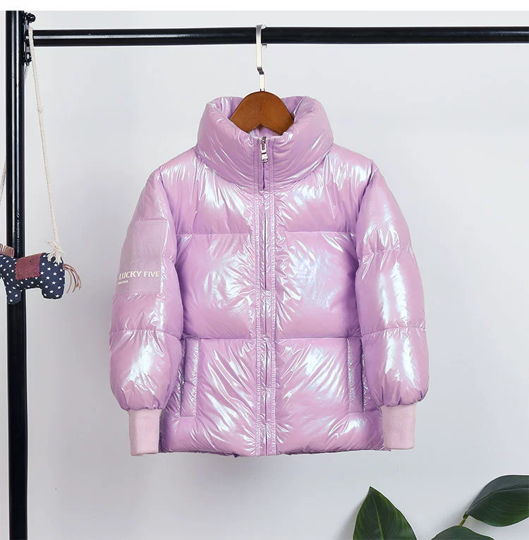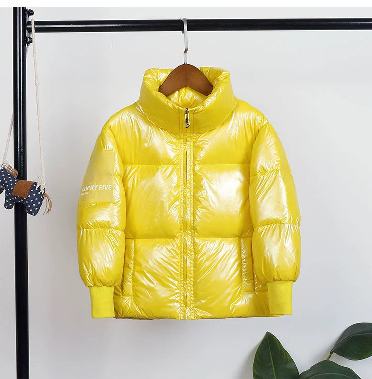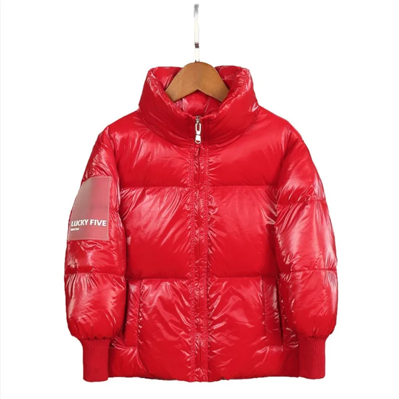 Детский Зимний пуховик для подростков, модное глянцевое плотное пальто, свободная теплая парка на белом утином пуху для мальчиков и девочек, 2021