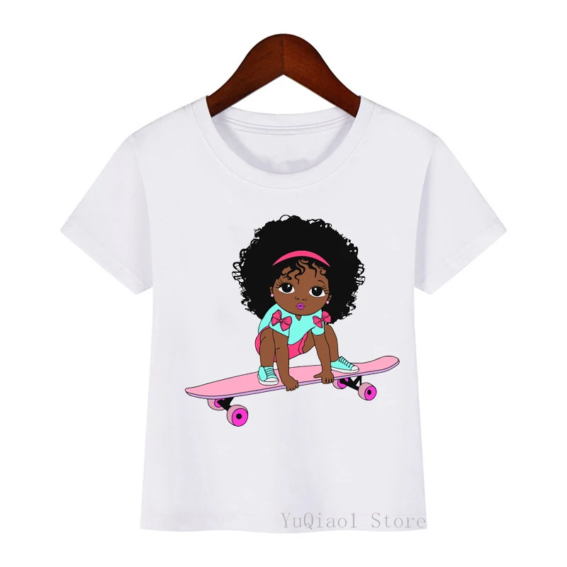 Милые детские футболки с принтом афро-принцессы для катания на коньках, милая маленькая королева меланина, черная футболка для девочек, детская одежда, футболка