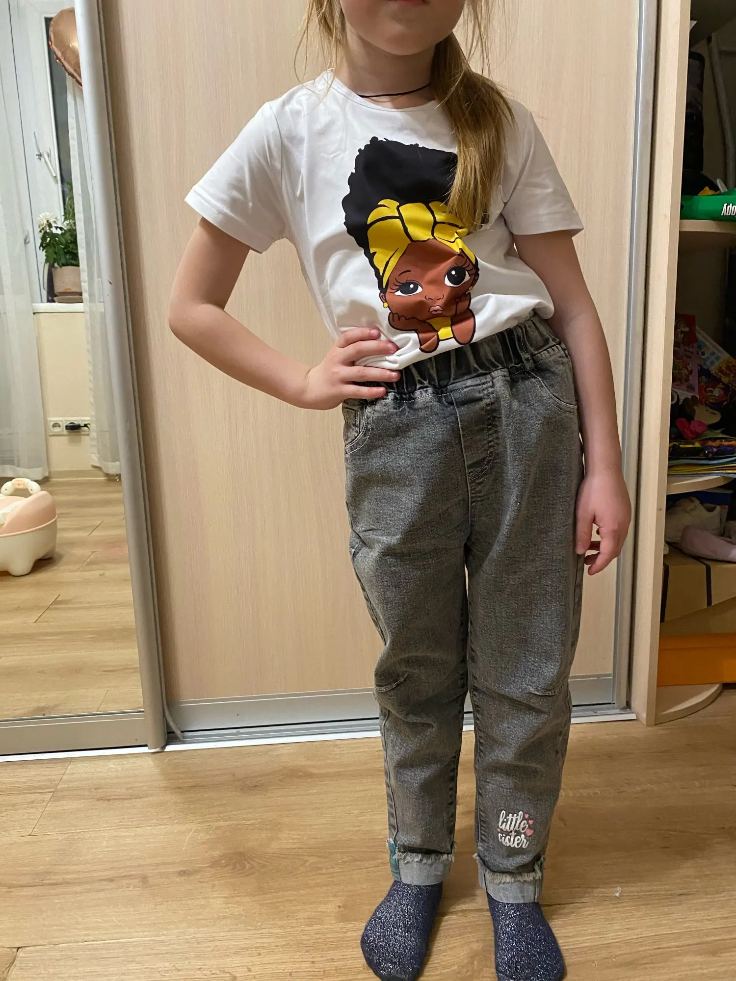 Милая маленькая черная футболка с принтом меланина для девочек на д...