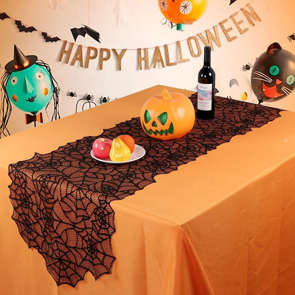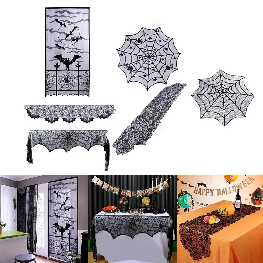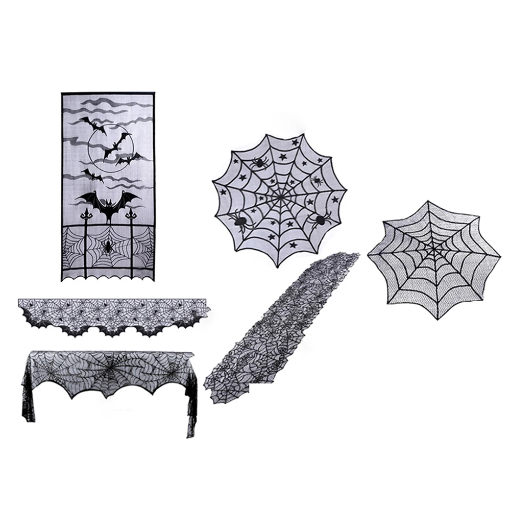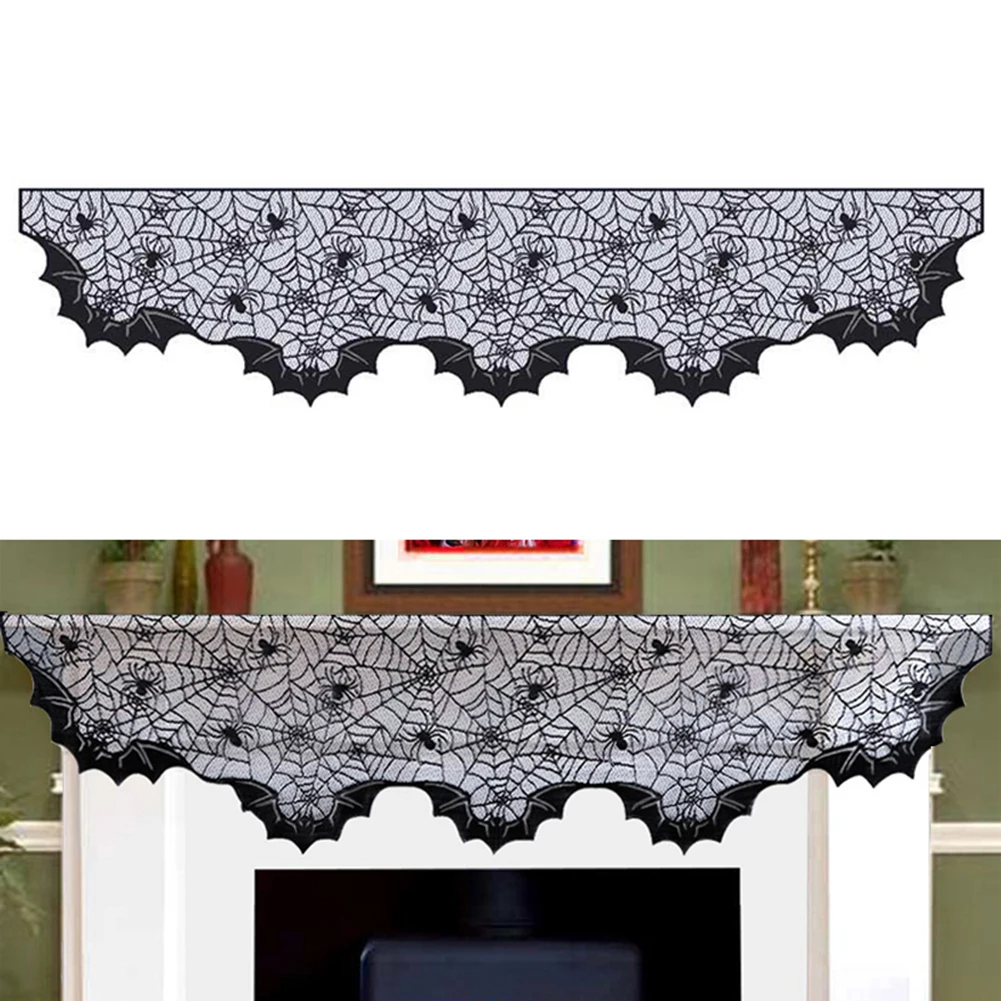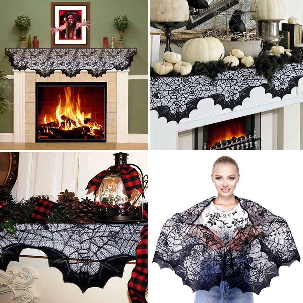 Реквизит для декора на Хэллоуин, Черная кружевная ткань, камин, летучие мыши, мантия, шарф, фокус или подарки, баннер для косплея