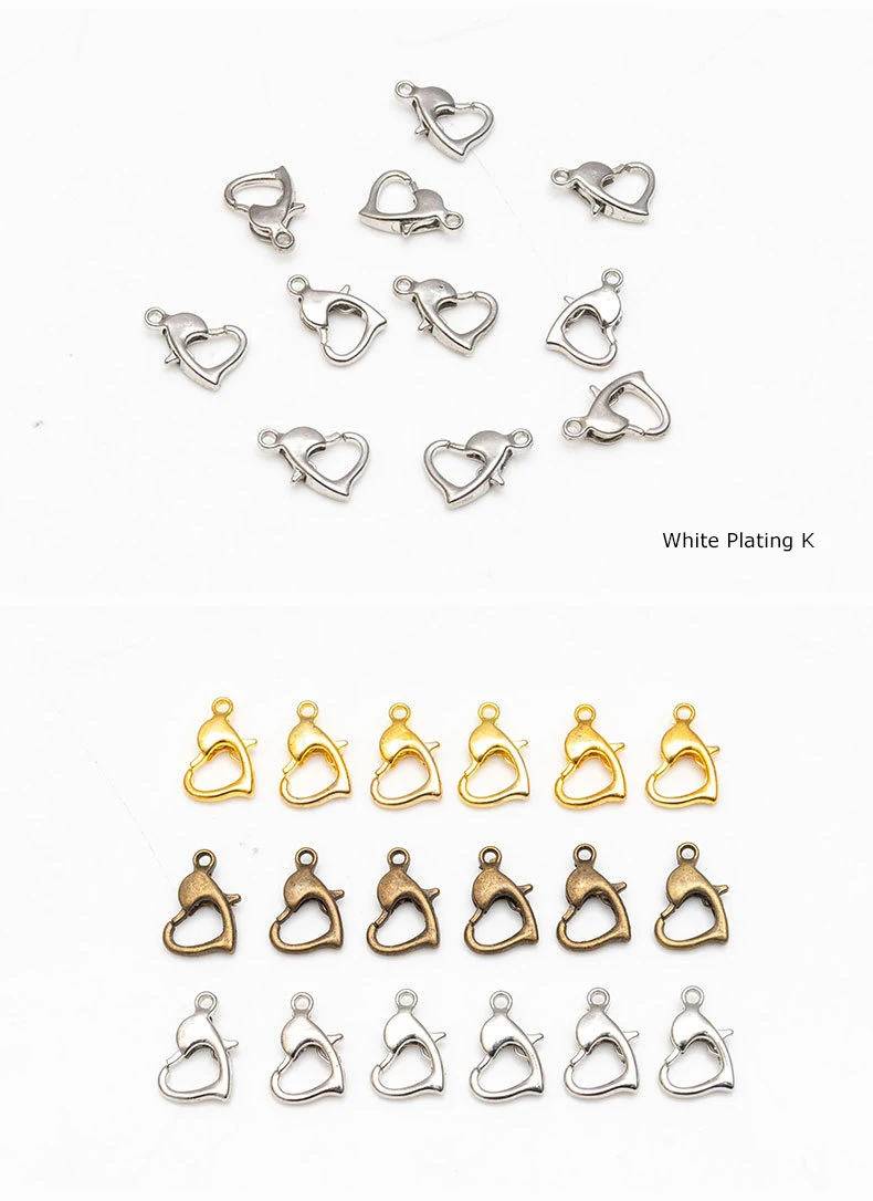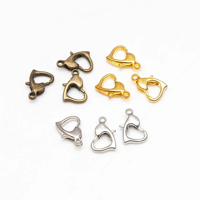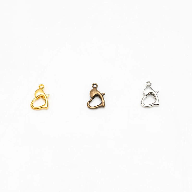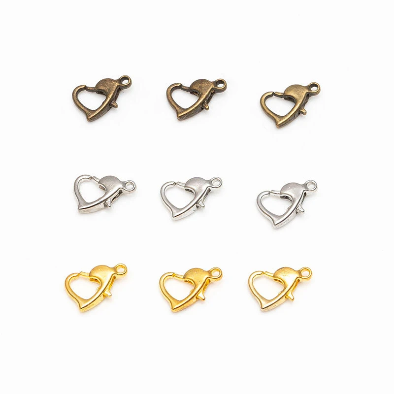 30 шт 10 мм золото серебро бронзовое Сердце Форма сплава Омаров застежки браслет крючки соединить ювелирные изделия DIY Украшение Колье декоративная пряжка