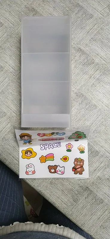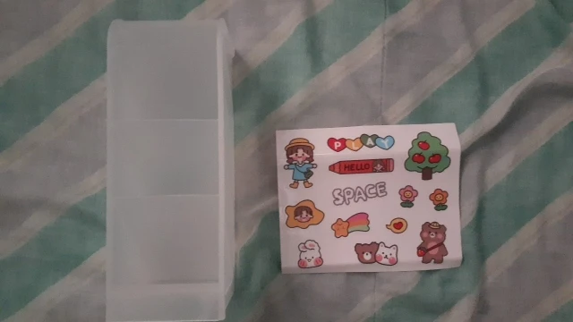 Отлично! Каждое отделение вмещает множество карандашей, дно не достаточно сильно для них, но с радостью вмещает ленту или мелкие предметы, такие как на фотографиях. Прибыл очень быстро и очень хорошо упакован. Наклейки имеют переплетенный фон и действительно милые, но я их не хотел.