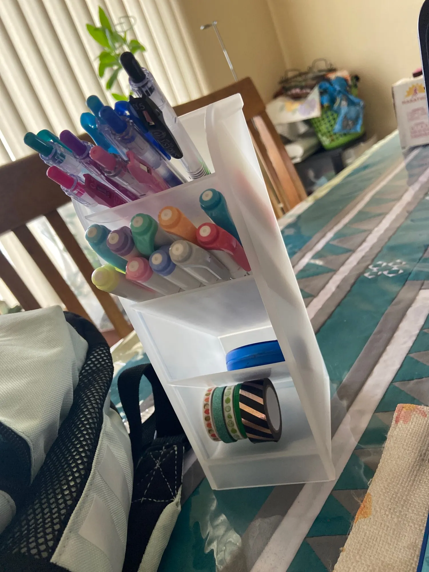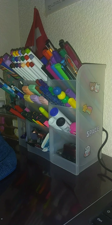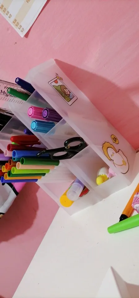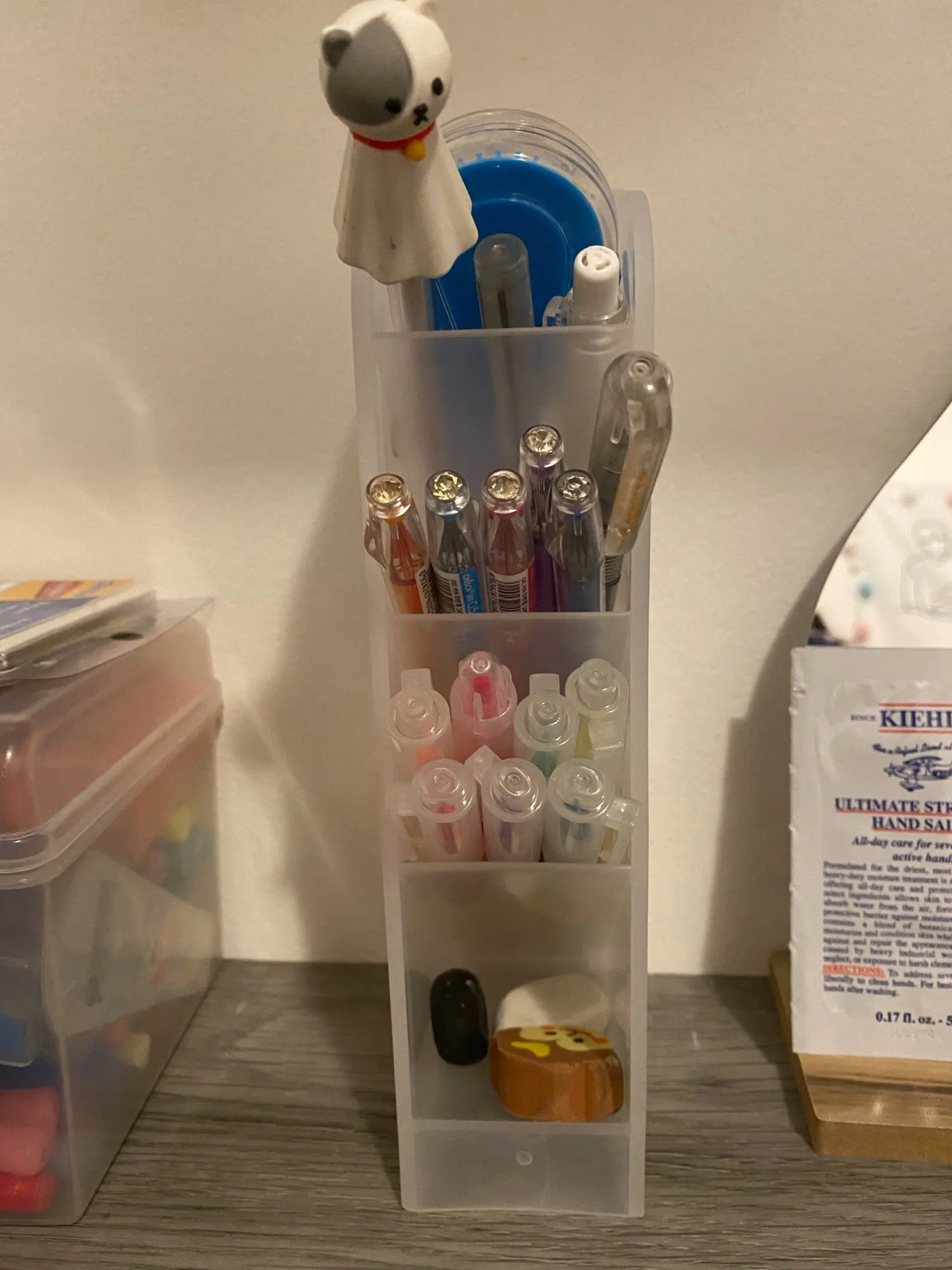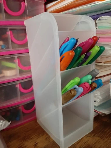 Really cute and useful organiser, it fits all of my pens and even has a little compartment at the bottom, it’s absolutely perfect and a great price, so I would highly recommend. Thank you so much xx:):).