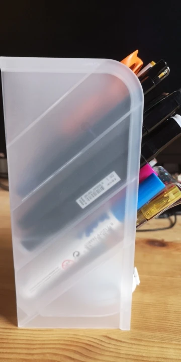 Хороший продукт Я думал, что он будет больше, чем на самом деле. Я бы купил большой. Я не знаю, будет ли он падать, если я надену на него свои ручки и карандаши (вертикально).