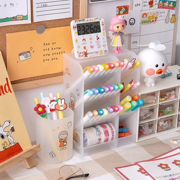 Настольный органайзер MINKYS Kawaii, 4 отделения, держатель для ручек, настольная подставка для хранения карандашей, школьные и офисные канцелярские принадлежности