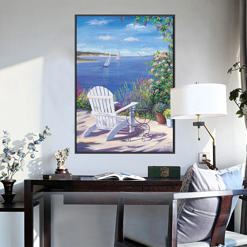 Современная абстрактная картина маслом в виде ландшафта Средиземного моря, Постер и принты на холсте, Настенная картина для украшения дома