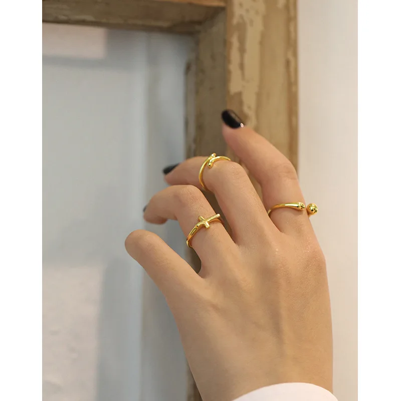 Женское серебряное Открытое кольцо SHANICE, минималистичное кольцо с крестом, простые регулируемые кольца для женщин, Христианский подарок, ювелирные изделия для костяшек
