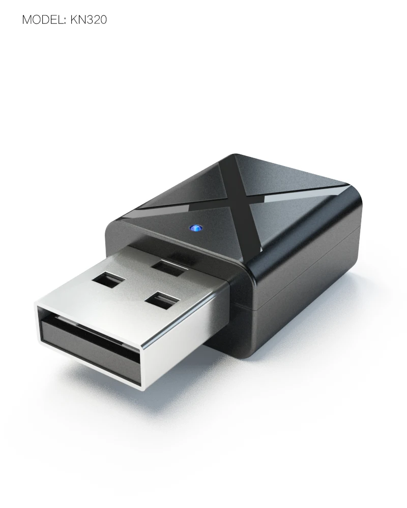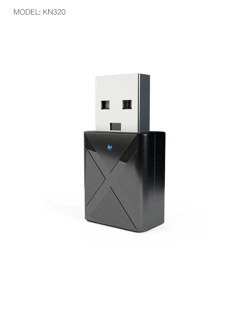 A) режим RX: имя сопряжения: KN320, найдите KN320 в настройках Bluetooth телефона для сопряжения. Синий светильник мигает во время процесса сопряжения, и синий светильник перестает мигать после успешного сопряжения. Подключите устройство к аудиоустройству с 3,5 аудио кабель.