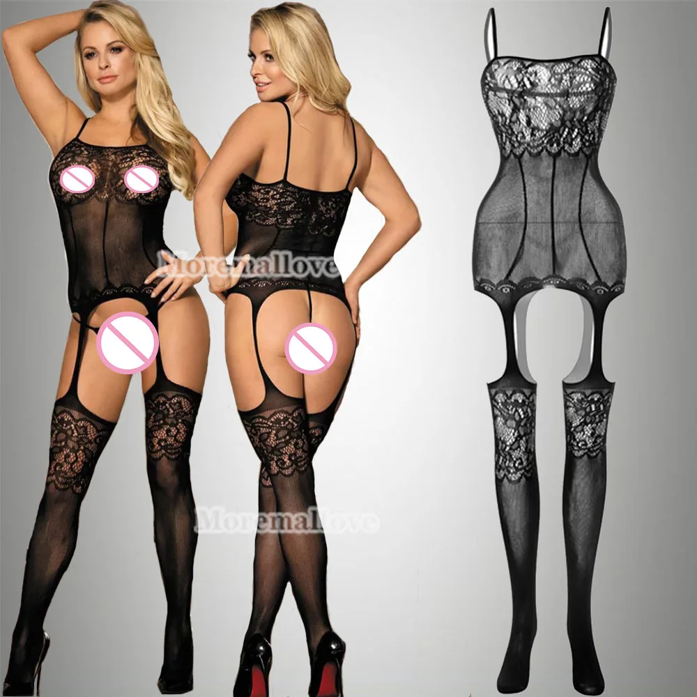 Комплект женского экзотического боди 3 в 1, сетчатые жаккардовые перчатки и кружевная маска, женское маскарадное нижнее белье, сетчатые чулки, боди