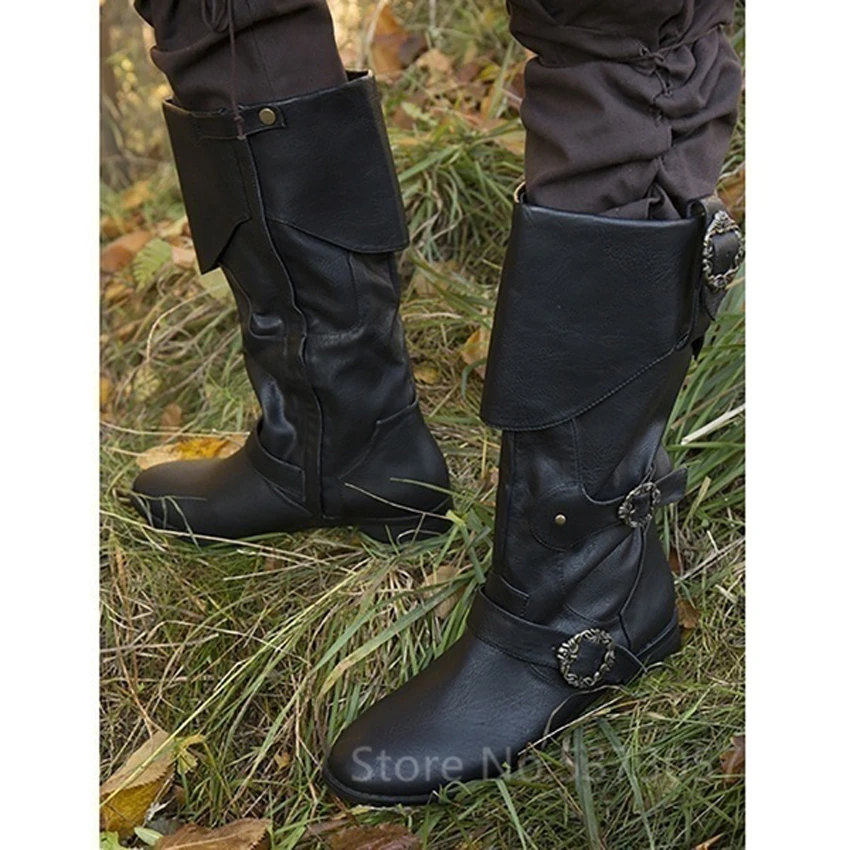 Средневековые Мужские Винтажные кожаные ботинки, осень пиратские сапоги, ретро, гладиаторская обувь с пряжкой, мужская обувь, косплей, Костюм викинга