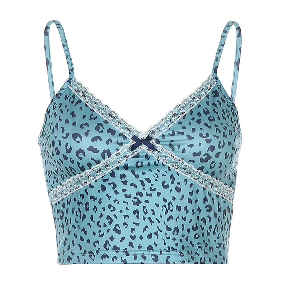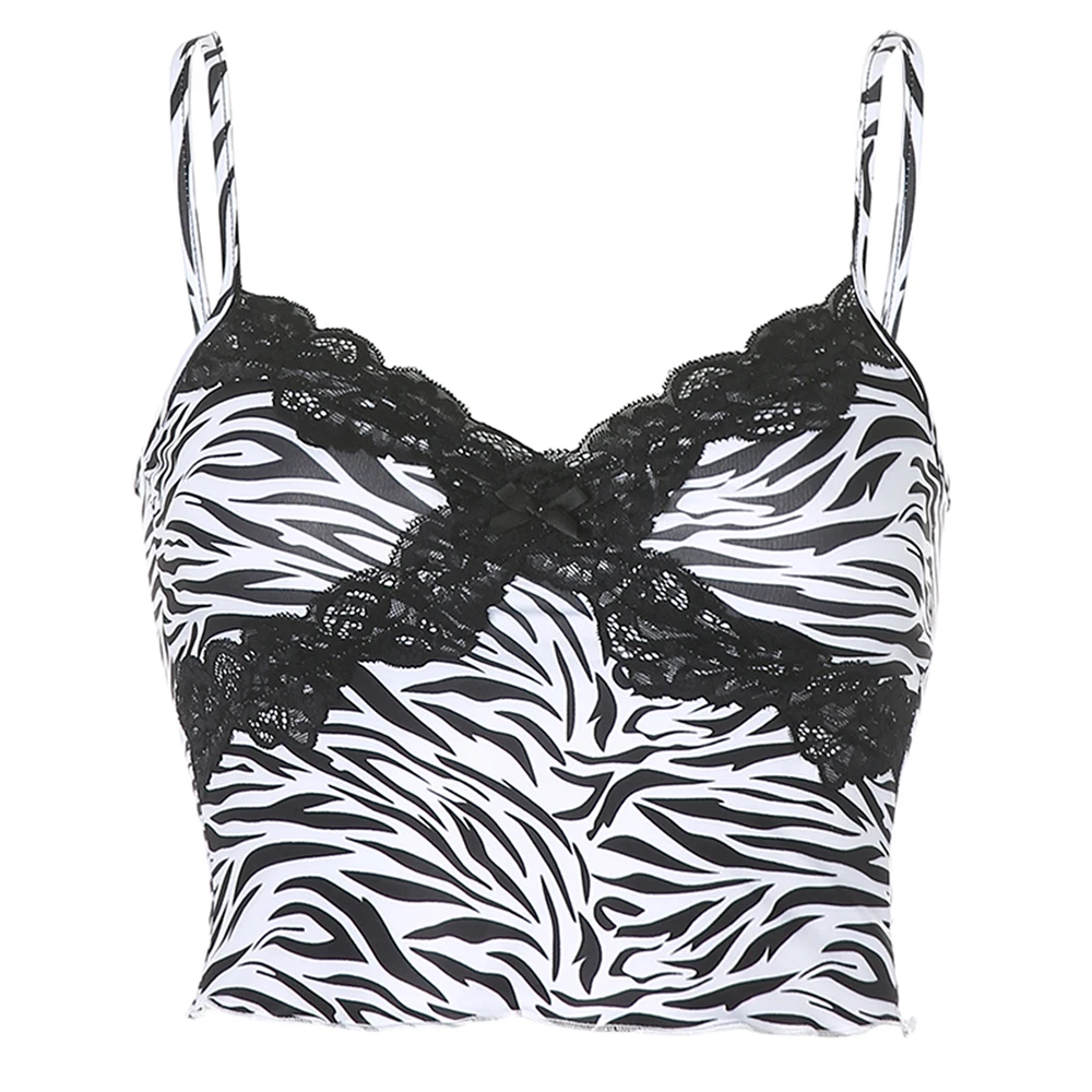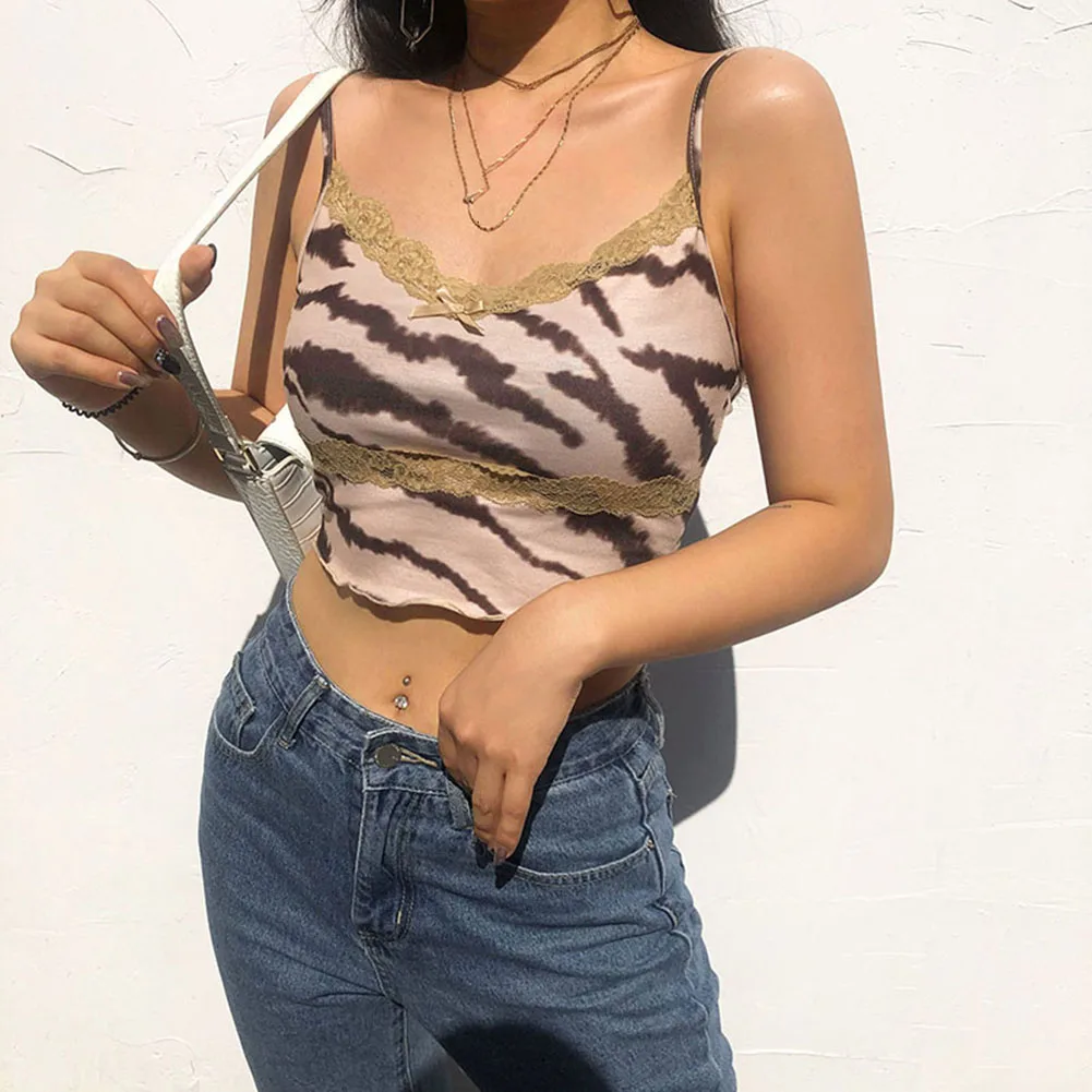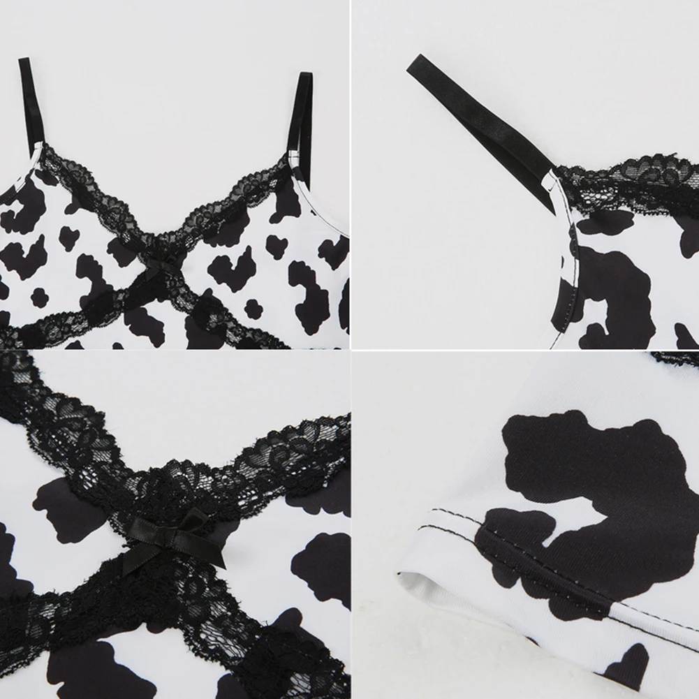 Женский укороченный топ составного кроя с кружевными краями, с коровьим принтом, без рукавов, с V-образным вырезом, уличная одежда в стиле Харадзюку