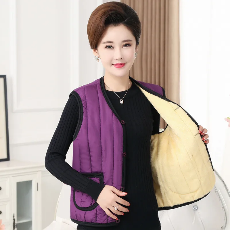 Женский зимний жилет для женщин среднего возраста, теплый утепленный жилет из хлопка и бархата, парка, женский жилет без рукавов, куртка, топы, размеры 4xl, A1926