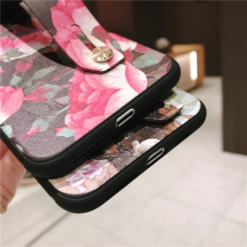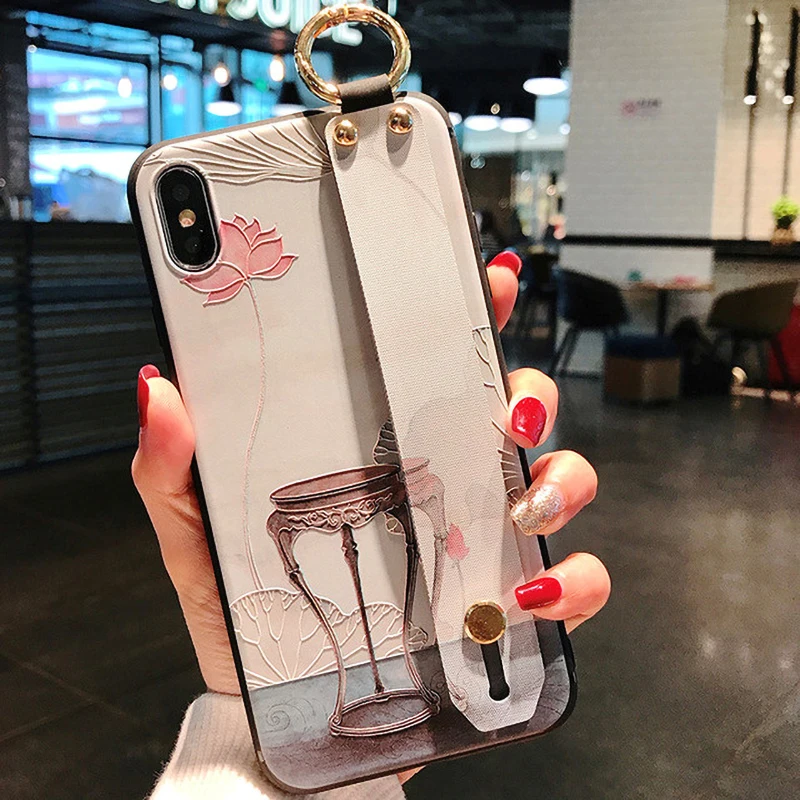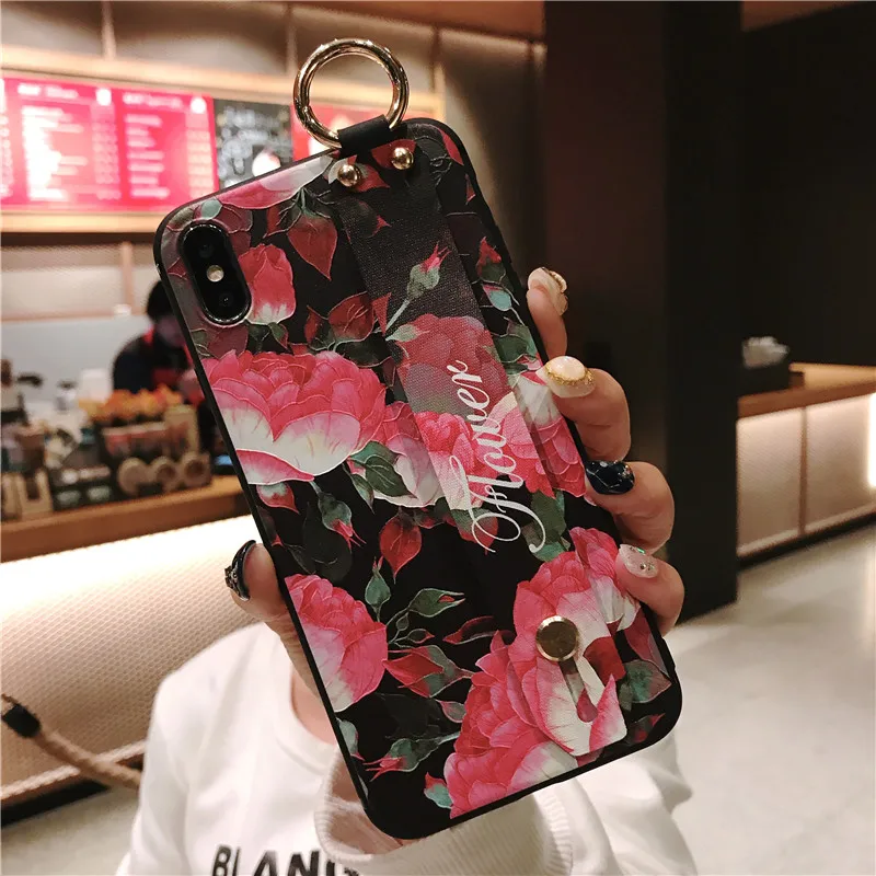 Мягкий чехол из ТПУ с ремешком на запястье для iphone 11 pro Max 7 8 6s plus, чехол для iphone X Xs max XR, Винтажный чехол с цветочным узором