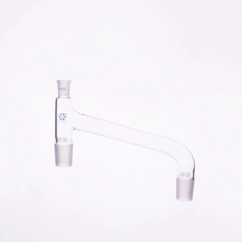Дистиллирующая головка, 75 °-105 ° изогнутая, стандартный заземляющий рот, верхний 14/23, под 29/32, боковая 29/32,75-105 градусов дистилляционная головка