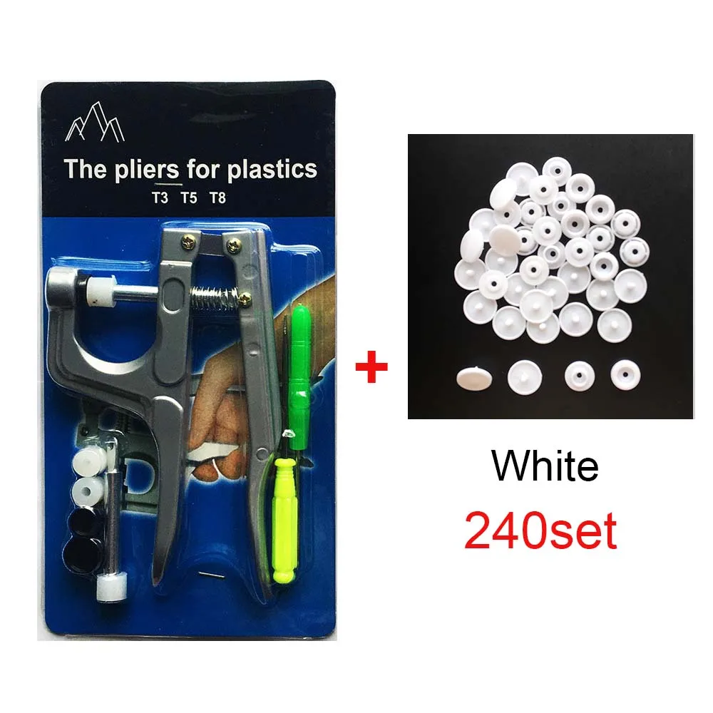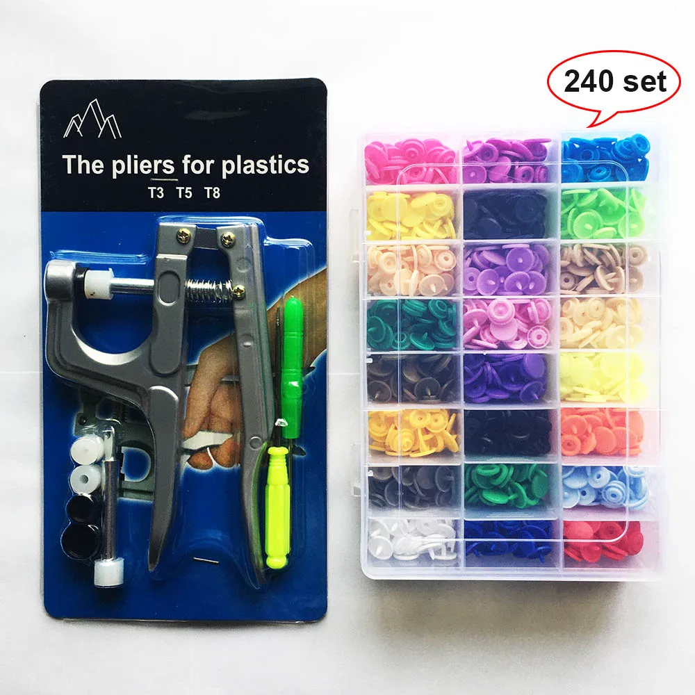 240 Декодер каналов кабельного телевидения пластиковые кнопки для одежды, декоративные каучуковые Botones кнопка пресс-Оснастка для кнопки для одежды из верха + 1 набор оснастки плоскогубцы + 1 пластиковая коробка