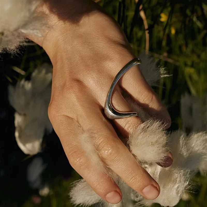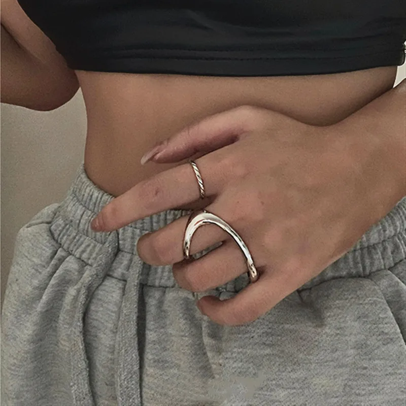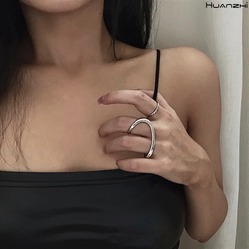HUANZHI, новинка 2020, модное металлическое кольцо на два пальца, аррегулярное, преувеличенное, панк, серебристый цвет регулируемый, для женщин, девушек, ювелирные изделия, подарки