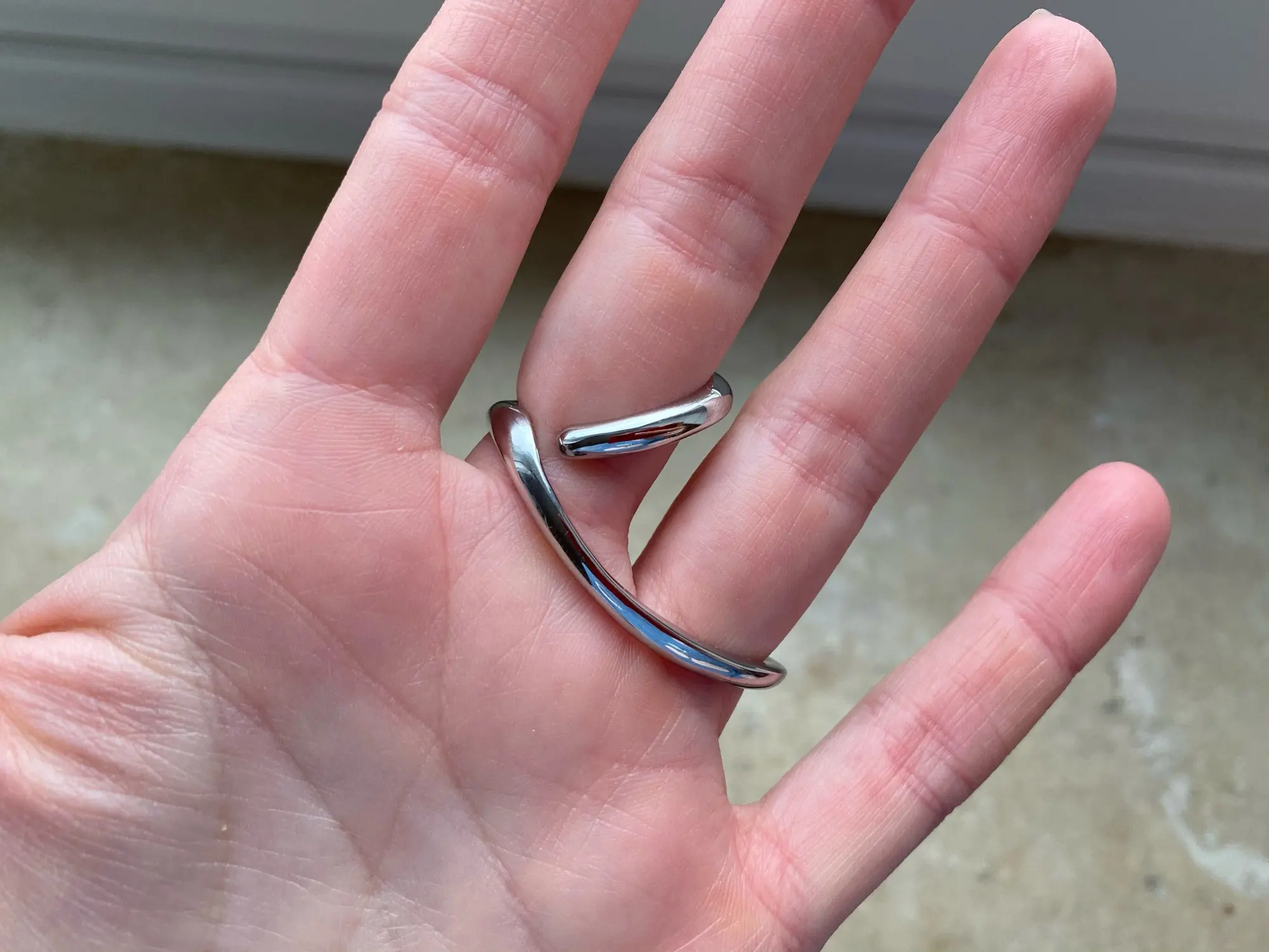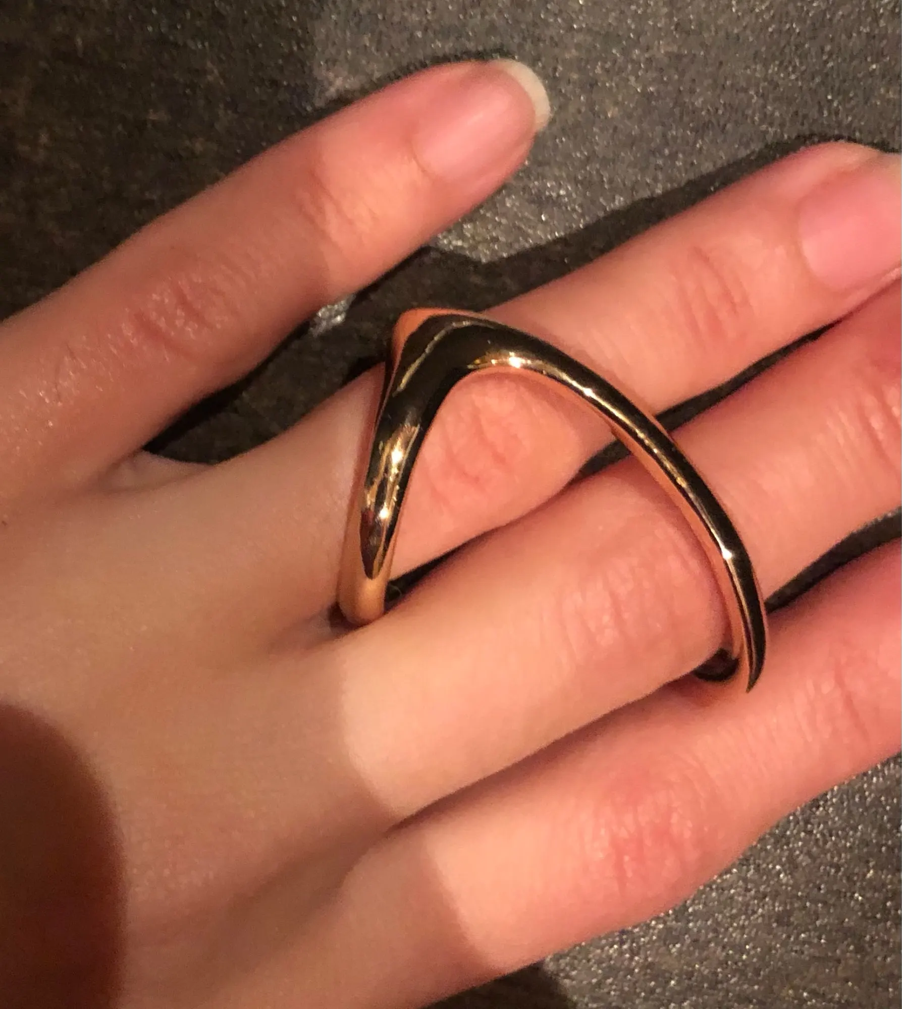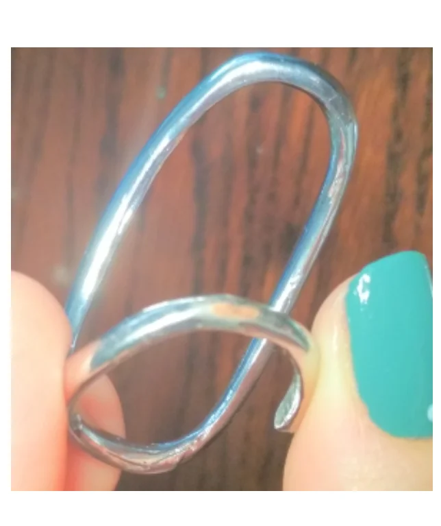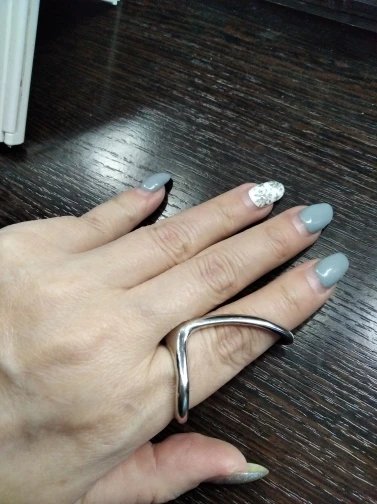 Доставка месяц. Кольцо весьма не обычное. На 2 пальца. Нигде такое не видела. Оно железное, без размера. У меня пальцы 17 и 18 размеров, подошло. (купила за 180р.) Красивое кольцо. Смотрится интересно. Не мешается - удобно сидит. Но возможно облезет, т.к. на последнем фото видно, снизу кольца проглядывает розовый цвет. P.S. Пишите в отзывах про объёмы, про размеры, и длины в сантиметрах. Без них сложно выбрать товар. Смотрите мои другие заказы, кликнув на мое имя A***a, слева возле флажка (это можно смотреть только с КОМПьютера). Надеюсь мой отзыв с фотками, вам помог.