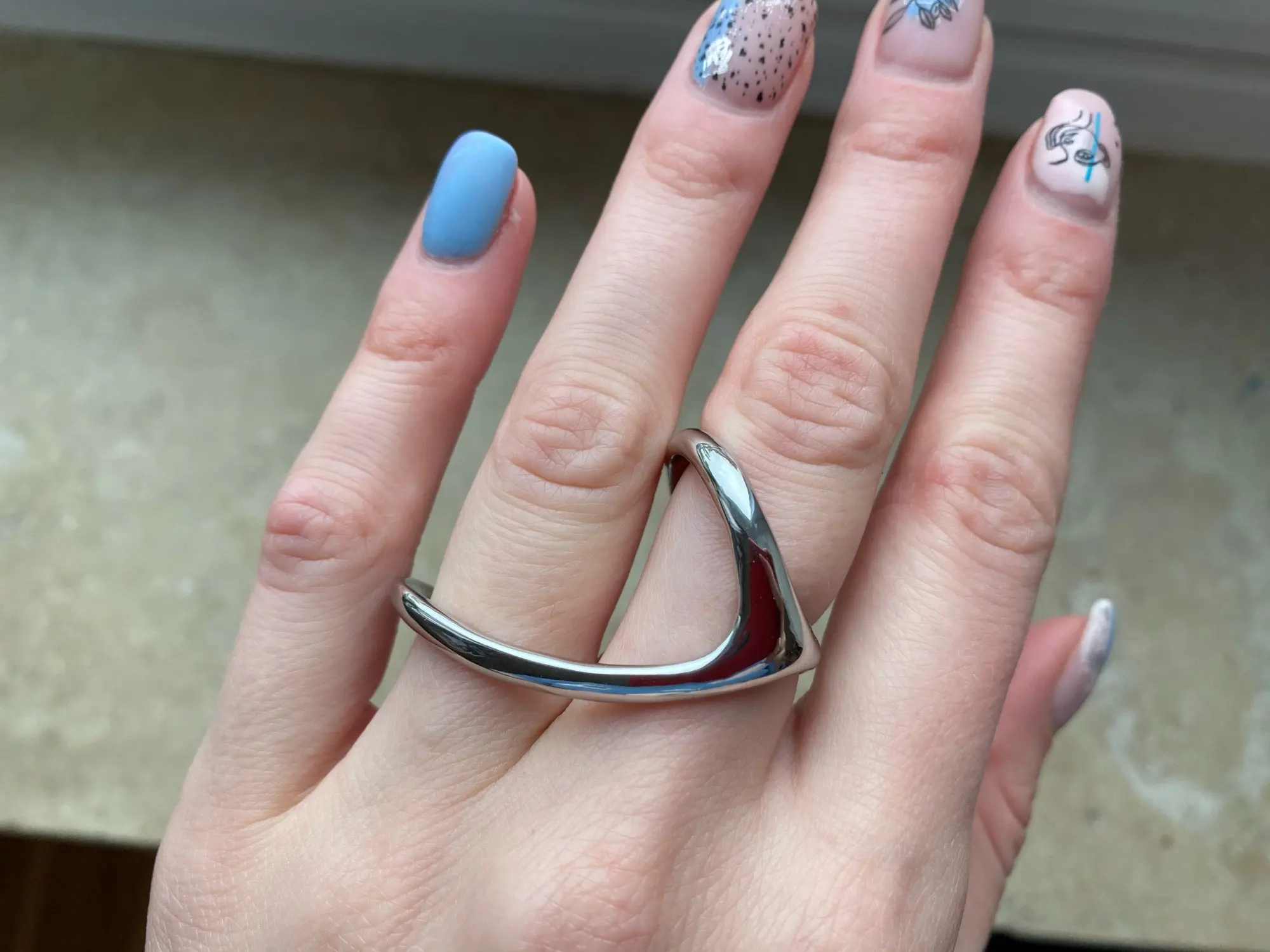 Великолепно смотрится колечко, очень обращает на себя внимание, все его замечают. Я довольна. Удобное и можно носить по-разному, переворачивать, менять пальцы.