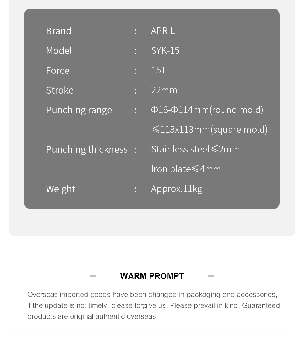 Гидравлический дырокол SYK, дырокол для железной пластины, 15T, дыр...