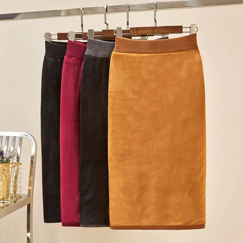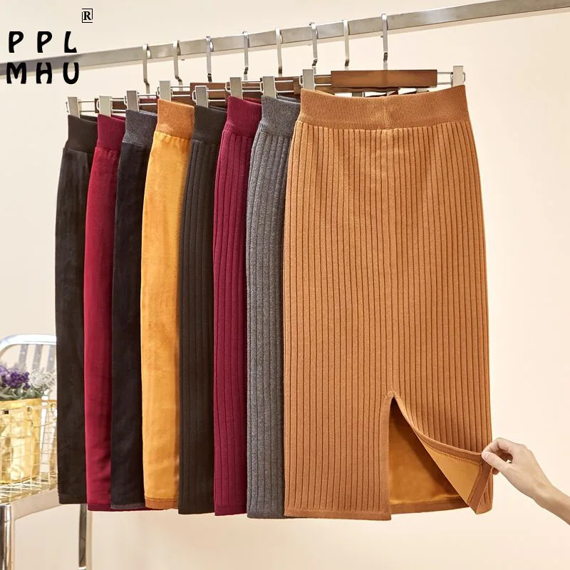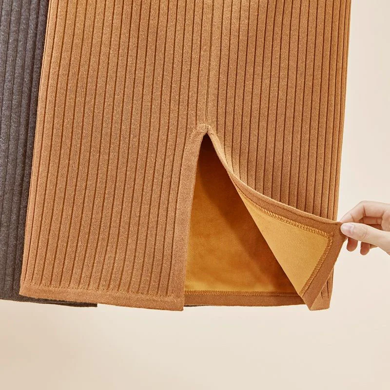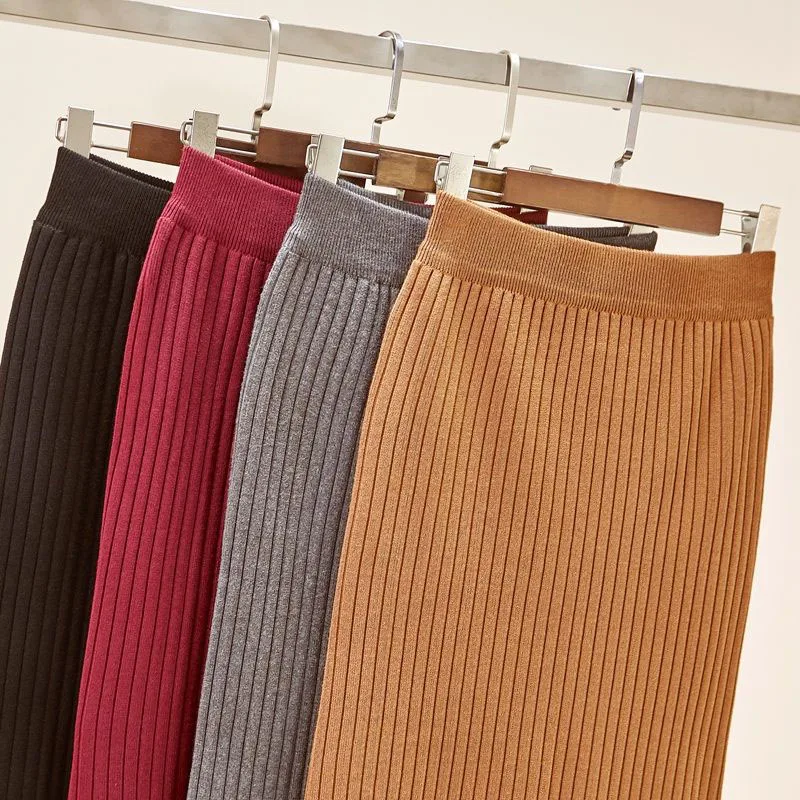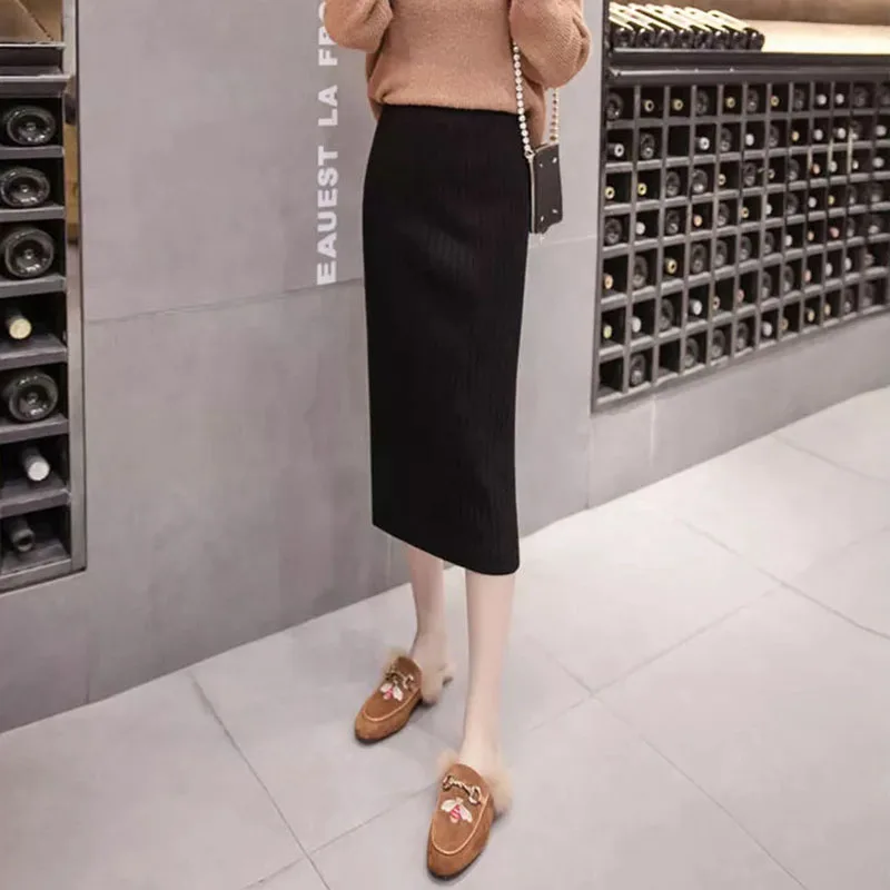 Базовая однотонная плотная вязаная юбка-карандаш на бедрах, Женская Повседневная тянущаяся юбка-оверсайз с эластичным поясом, зимняя теплая офисная юбка-карандаш для женщин