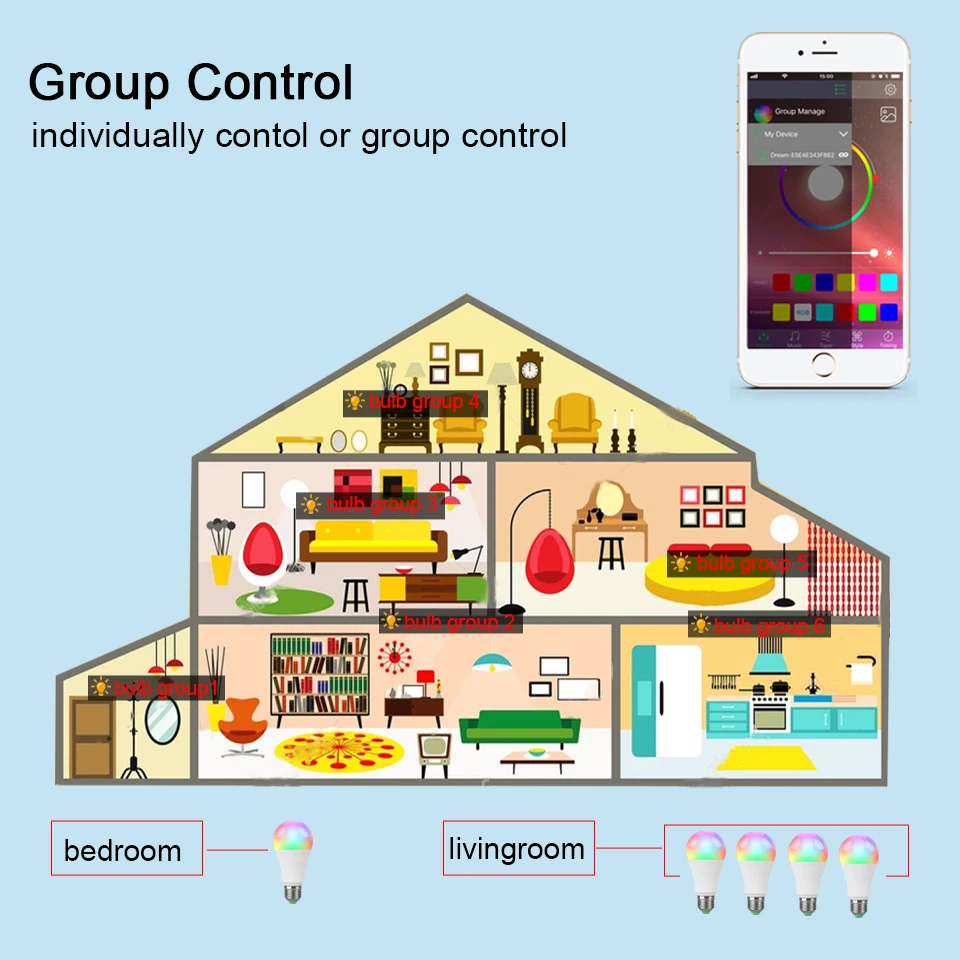 Беспроводная смарт-лампа E27, светодиодсветодиодный, 15 Вт, Bluetooth 4,0