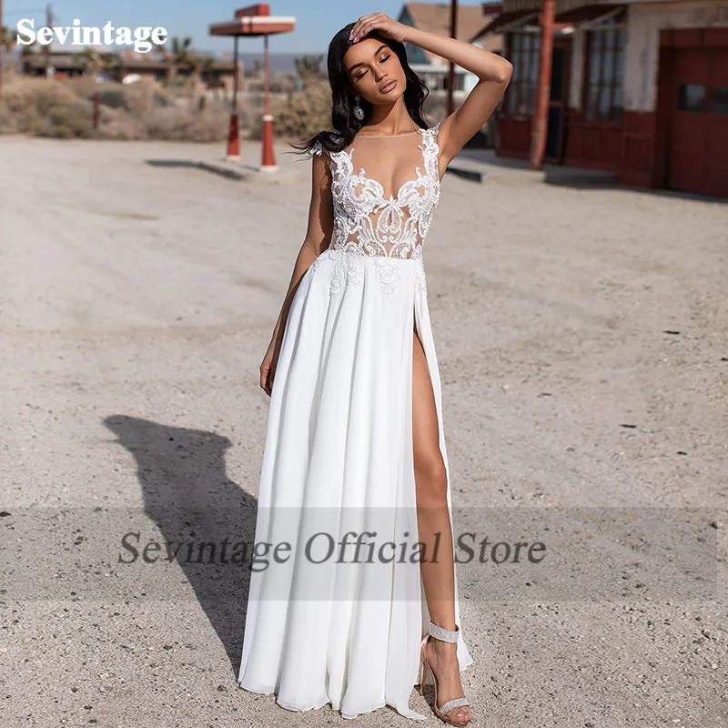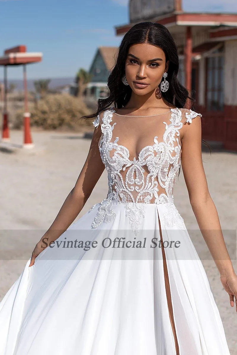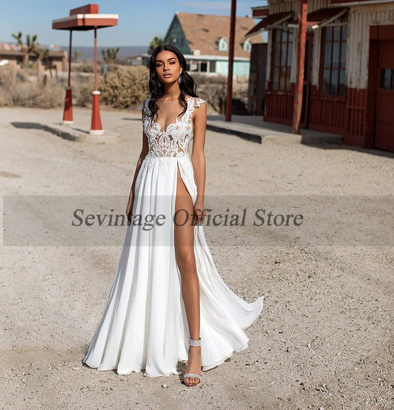 Пляжное свадебное платье в стиле бохо, сексуальное платье невесты с открытой спиной и разрезом по бокам, белая аппликация из кружева, свадебные платья на заказ