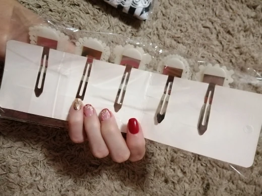 Получила заказ 15 штучек, все разные, пары нет, выглядят неплохо, по размеру: 5.5 см . длина, длина самой закалывающей части волос 3.4 см. Чтобы заколоть волосы надо оттапырить заколку и после закалость волосы. Пластик, который прикреплён к заколке сломается быстро, хватит на месяц-два небольше, слишком дорого за 223.79 руб. такие заколки. Покупайте когда будут подешевле, тогда есть смысл. Рекомендую.