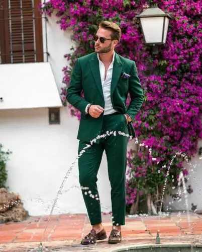 Костюм мужской двубортный с лацканами, смокинг для жениха, свадебная одежда, зеленые официальные, выпускные костюмы, комплект из 2 предметов (Блейзер и брюки)