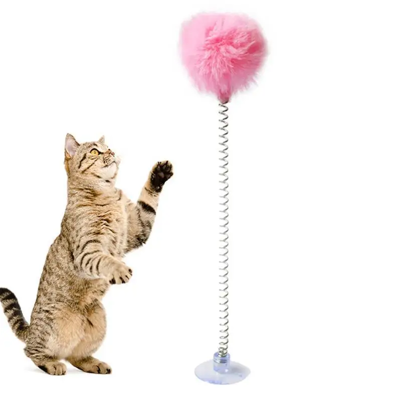 Пластиковые кошачьи игрушки с перьями забавный кот Помпон Мяч пружи...