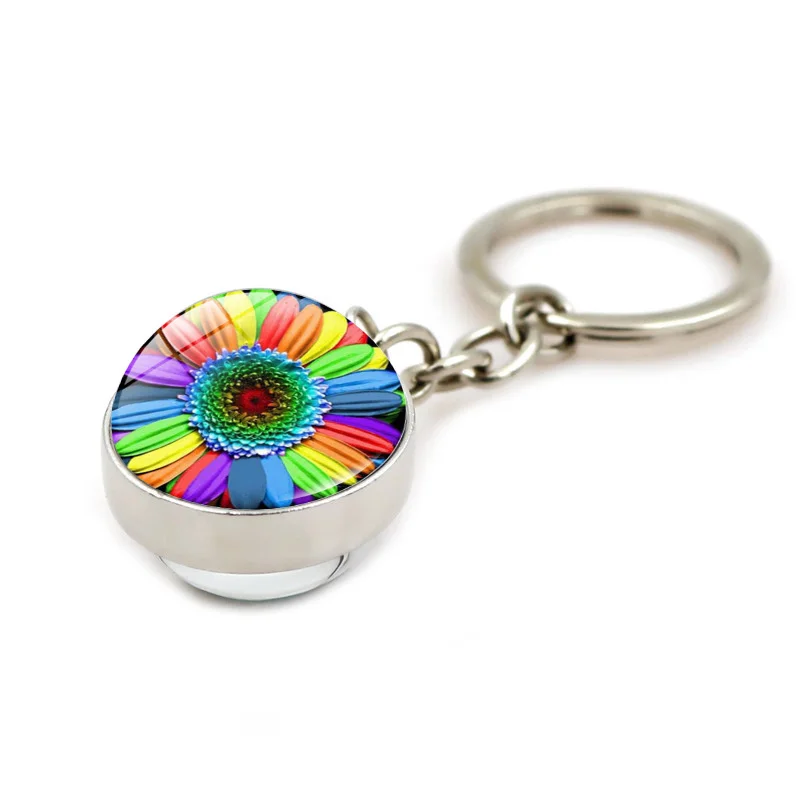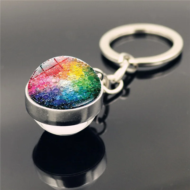 Брелок для ключей для геев, ювелирные изделия с цветным стеклянным кабошоном, радужный узор, двухсторонний стеклянный шар, брелок, подвеска, ювелирные изделия ЛГБТ