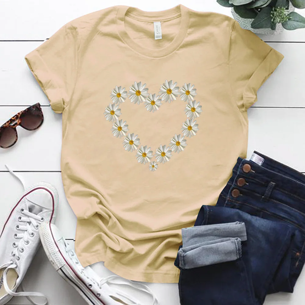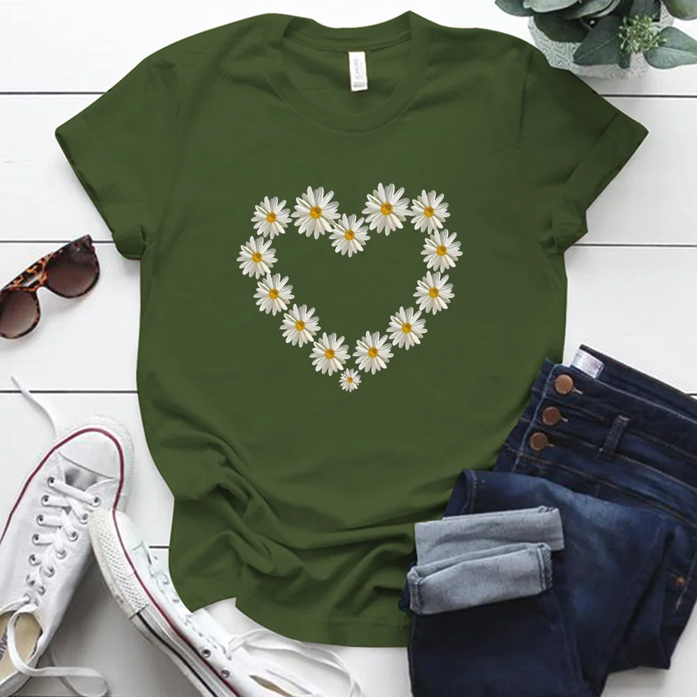 Графическая Футболка с принтом Дейзи Любовь Венок, размер плюс S-5xl, милые женские футболки, повседневная футболка с коротким рукавом, лучший подарок, женские топы
