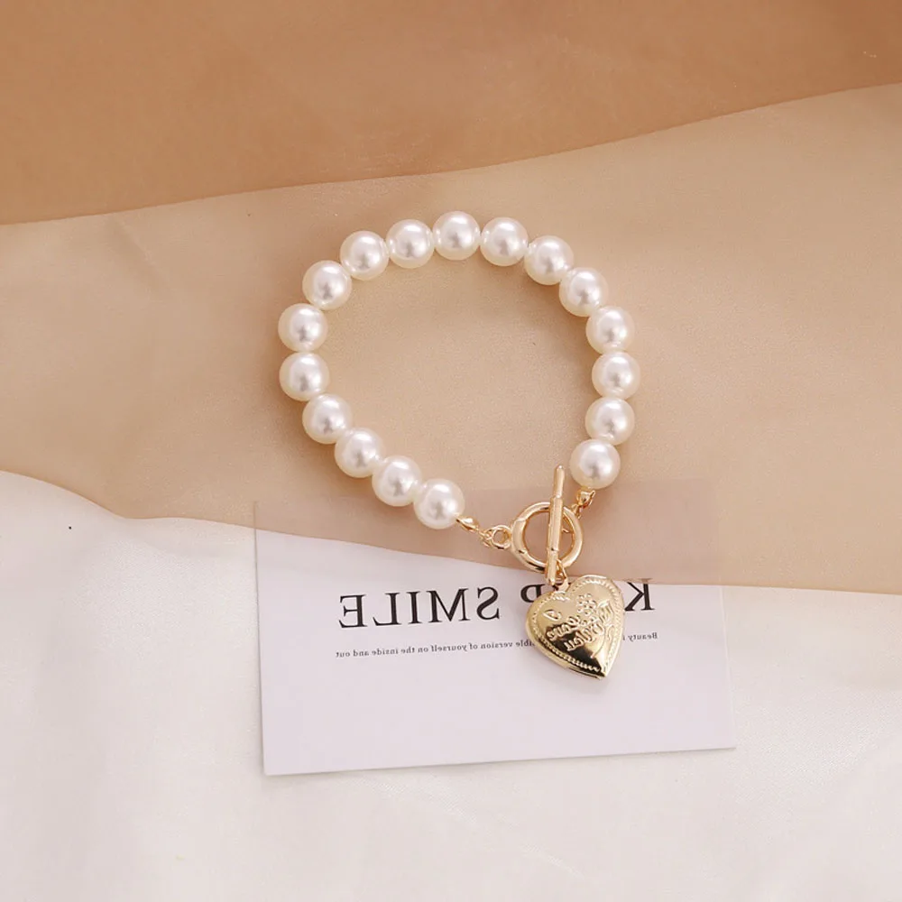 Ожерелье женское с кулоном в форме сердца, с искусственным жемчугом
