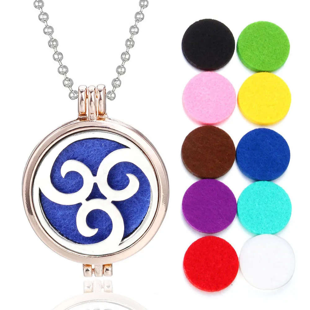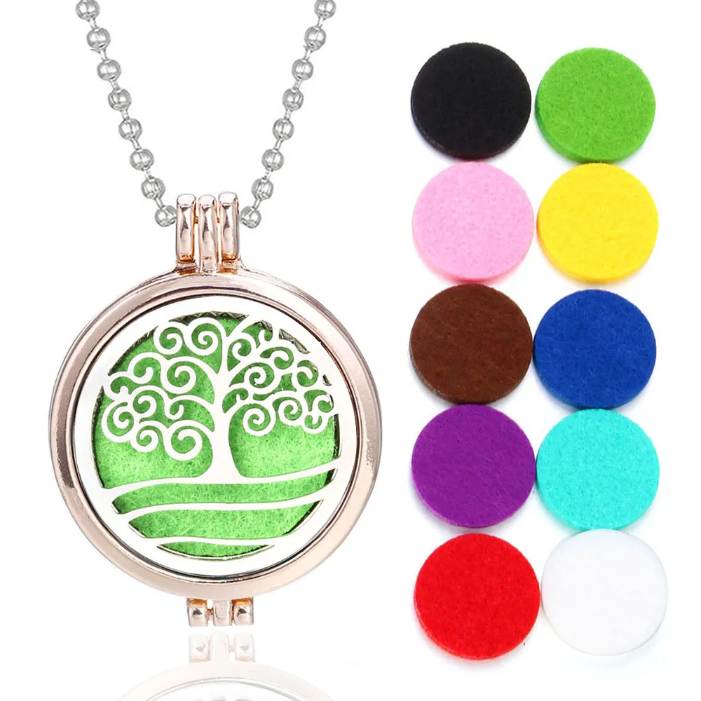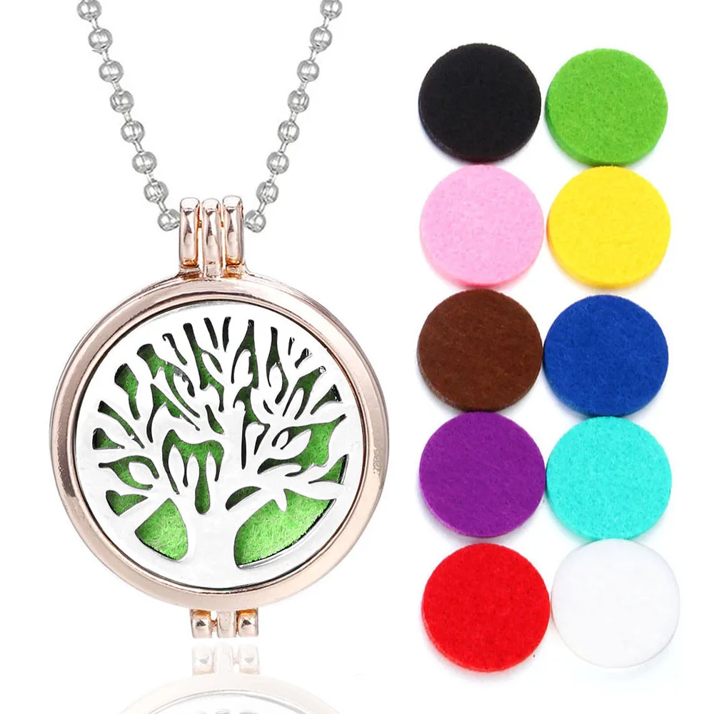 Ожерелье для ароматерапии, подвеска из розового золота, ожерелье с диффузором эфирного масла, кулон с ароматическим деревом жизни для женщин, ювелирные изделия бесплатно, 10 подушечек