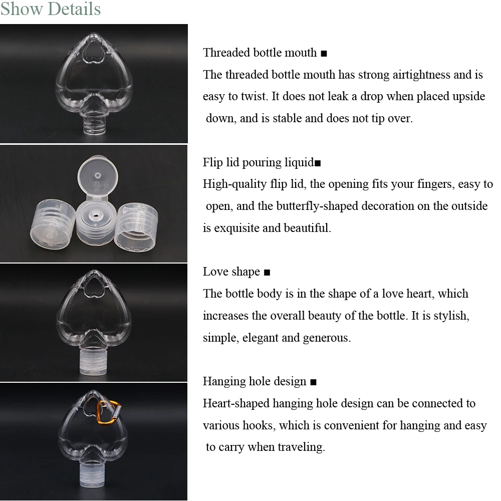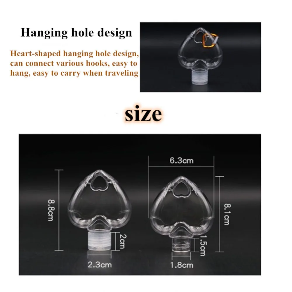 Портативная пустая бутылка для дезинфицирующего средства для рук в форме сердца, 3050 мл, с кольцом для ключей, дорожная многоразовая пустая бутылка