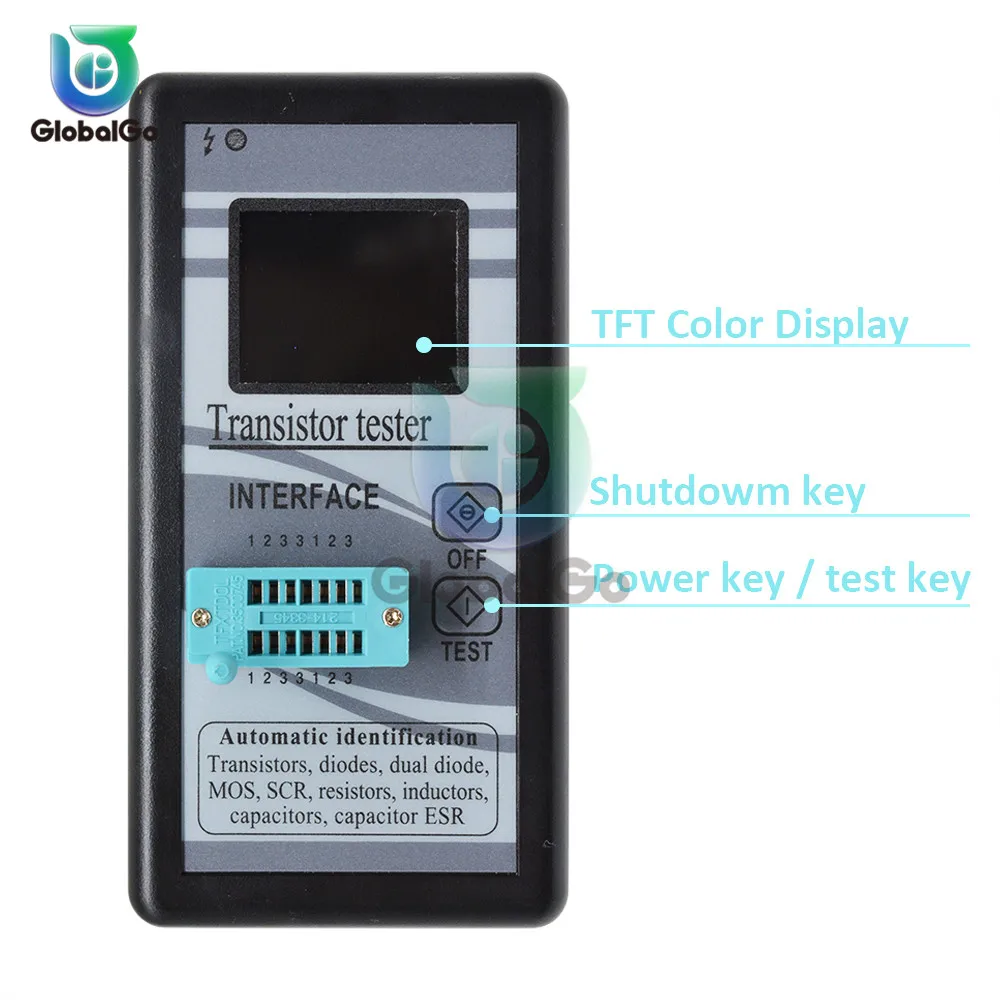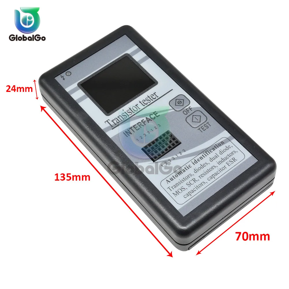 (Например, если Вы подберете Триод, вам не нужно учитывать порядок BCE 1, 2 и 3 контакта, просто подключите его. Затем нажмите кнопку test. Он автоматически распознает, Триод, полевой транзистор, тиристор или резистор. После того, как был идентифицирован как Триод, тест является NPN или PNP, и затем порядок BCE оценивается. Отображается графически, затем сообщает вам увеличение, включение напряжения и т. д. в основном, вам всего лишь нужно подключить и нажать кнопку. Остальное скажет вам, что это.)