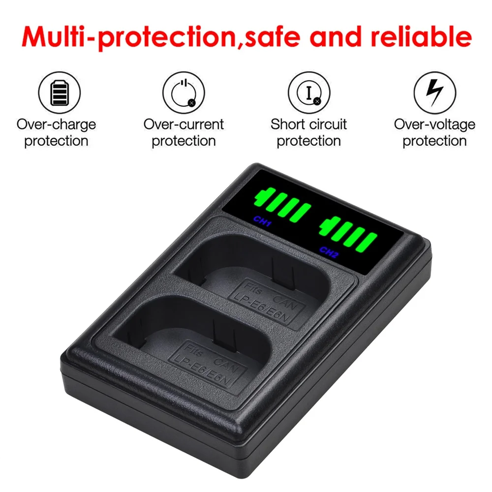 Аккумулятор LP-E6 LP-E6N + двойное зарядное устройство со светодиодной подсветкой, порт типа C для Canon EOS 6D 7D 5D Mark II III IV 5D 60D 60Da 70D 80D 90D 5DS R5 R6