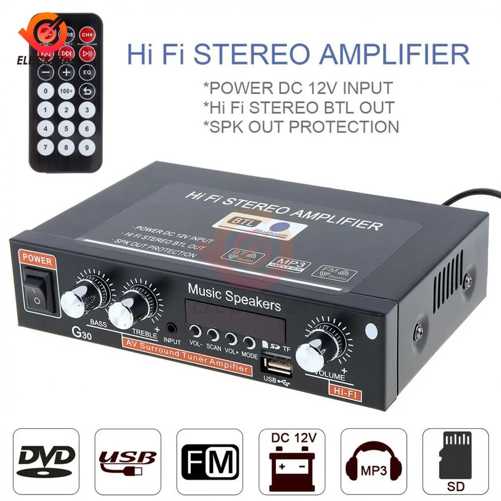 Цифровой автомобильный усилитель мощности G30, 800 Вт, 110-220 В, умный Bluetooth, HIFI, стерео, сабвуфер, музыкальный плеер, поддержка FM, TF, AUX, 2 канала