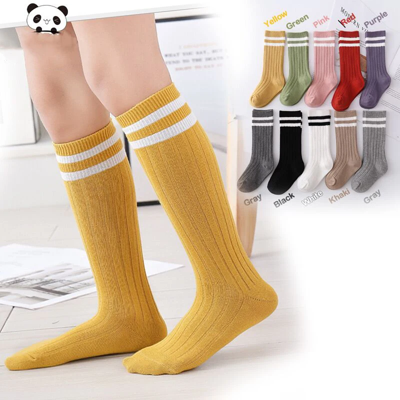 От 1 до 9 лет носки для маленьких девочек спортивные носки до колена для мальчиков хлопковые длинные детские носки в полоску дышащие детские школьный носок ярких цветов